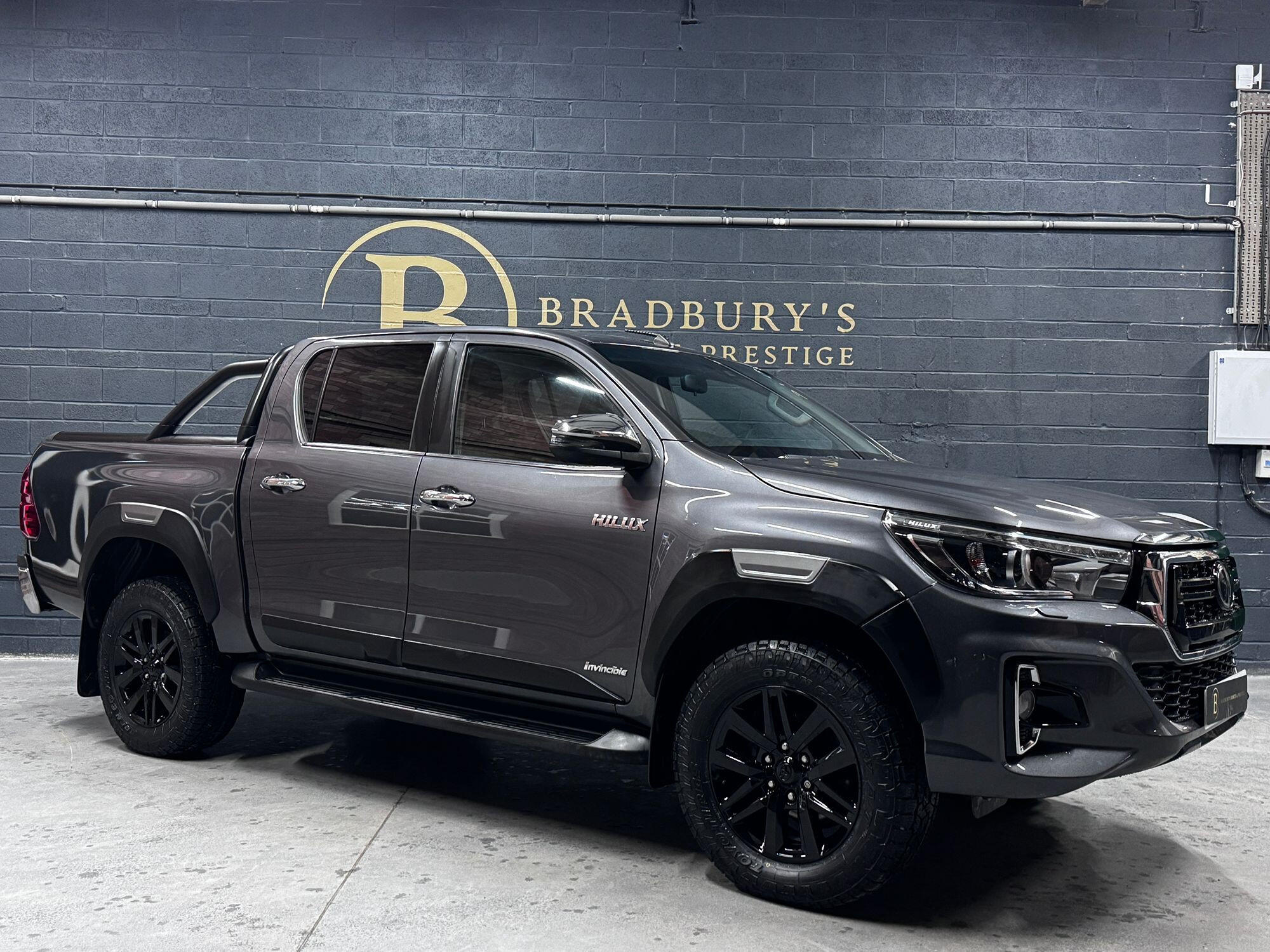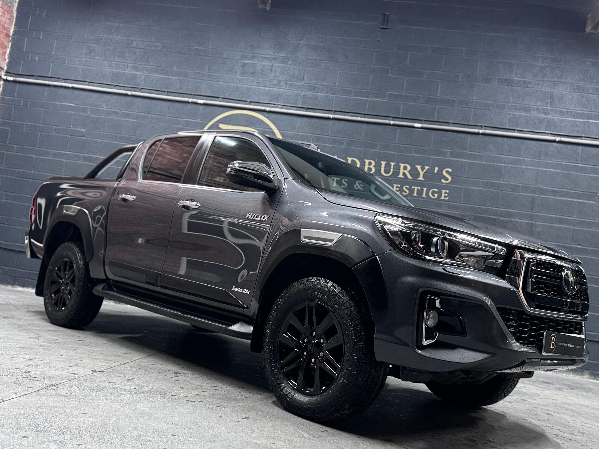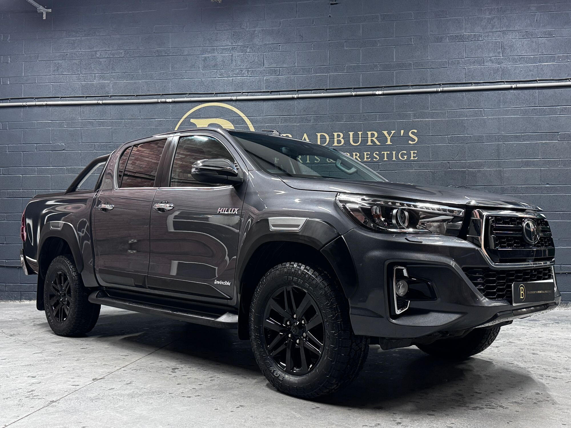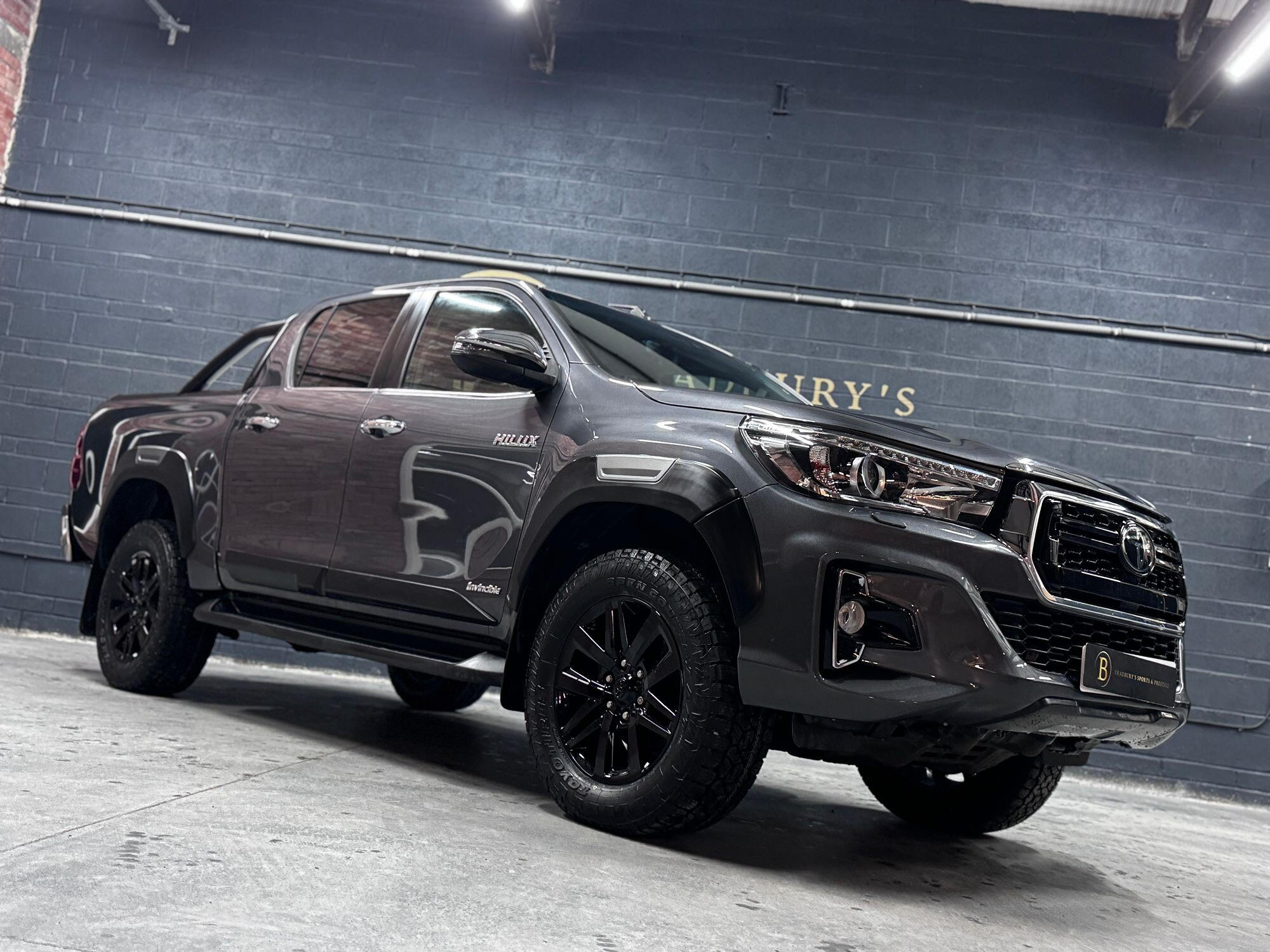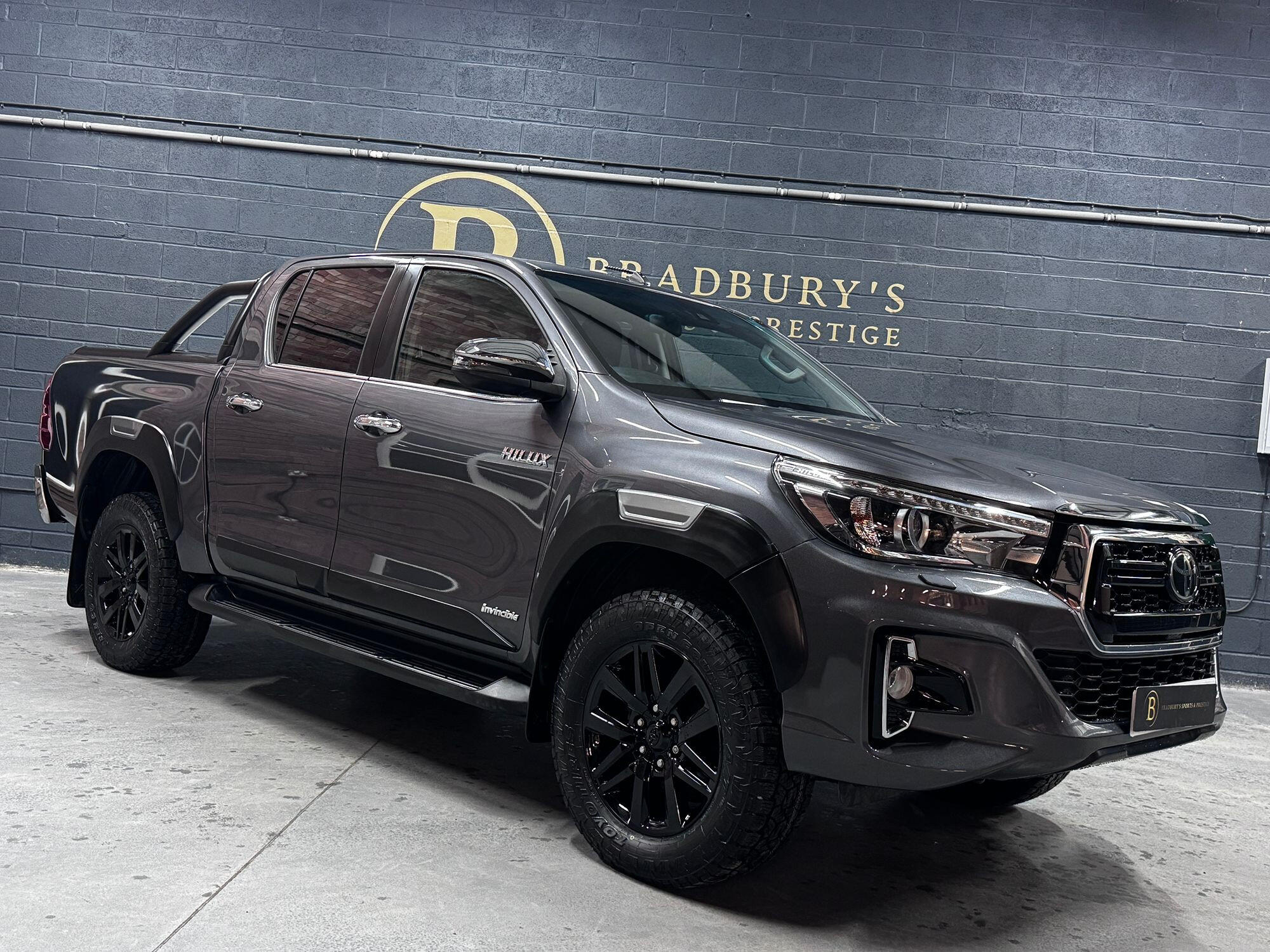 Bradburys Sports & Prestige are extremely proud to offer this absolutely stunning Toyota Hilux Invincible Auto finished in the beautiful shade of Grey Metallic. This is a beautifully specified vehicle, it is in truly fantastic condition and is one of the very best on the market. The car really is a testament to its 2 previous owner who have clearly proudly cherished and cared for the vehicle impeccably. The Vehicle has a comprehensive full service history with the latest service and mot having just been carried out. The vehicle comes fitted with the all important Toyota Mountain Top Roller shutter and black Roll Bars, Invincible X front bumper & wheel arches and upgraded brand new Toyo All Terrain tyres.