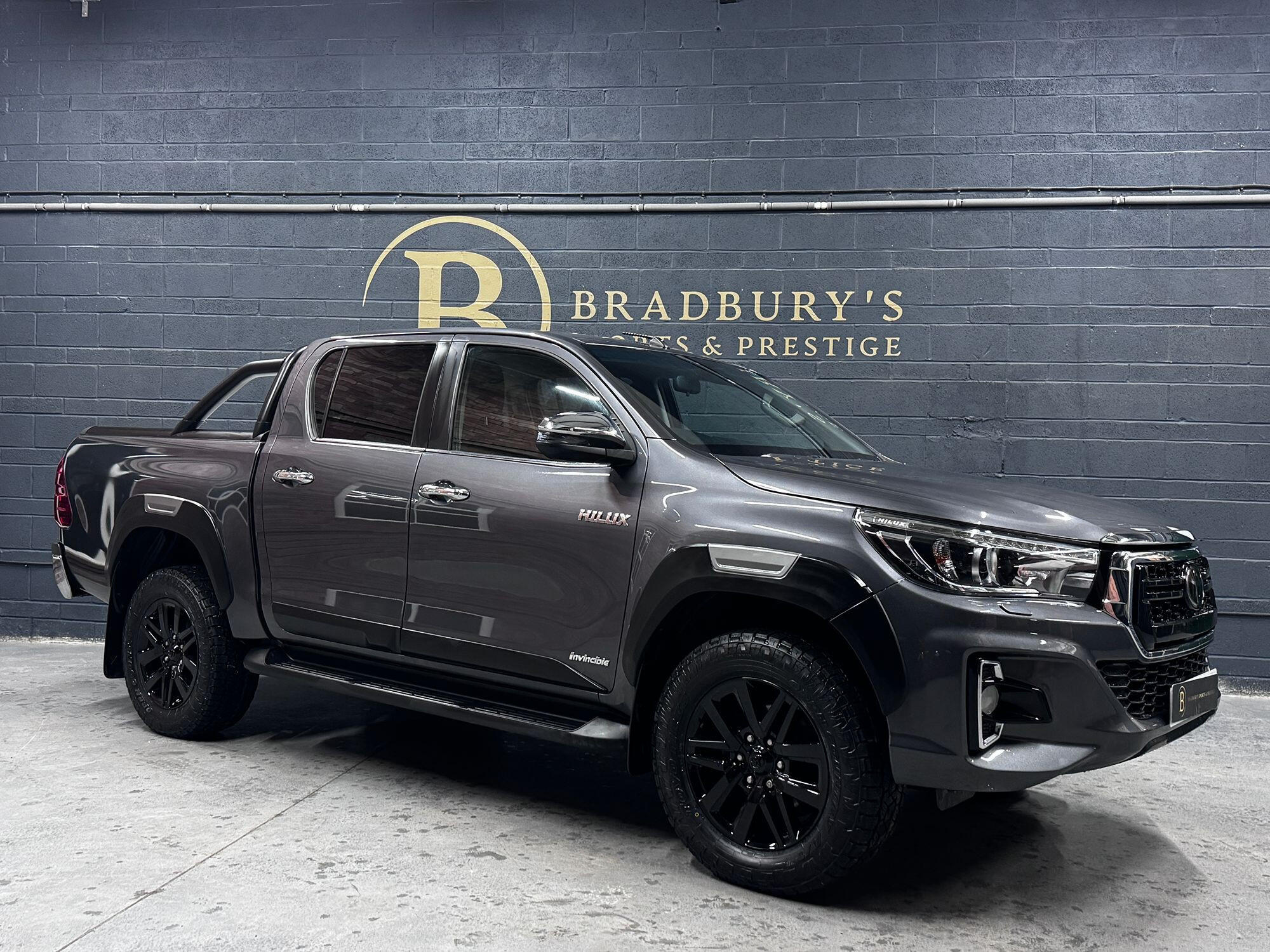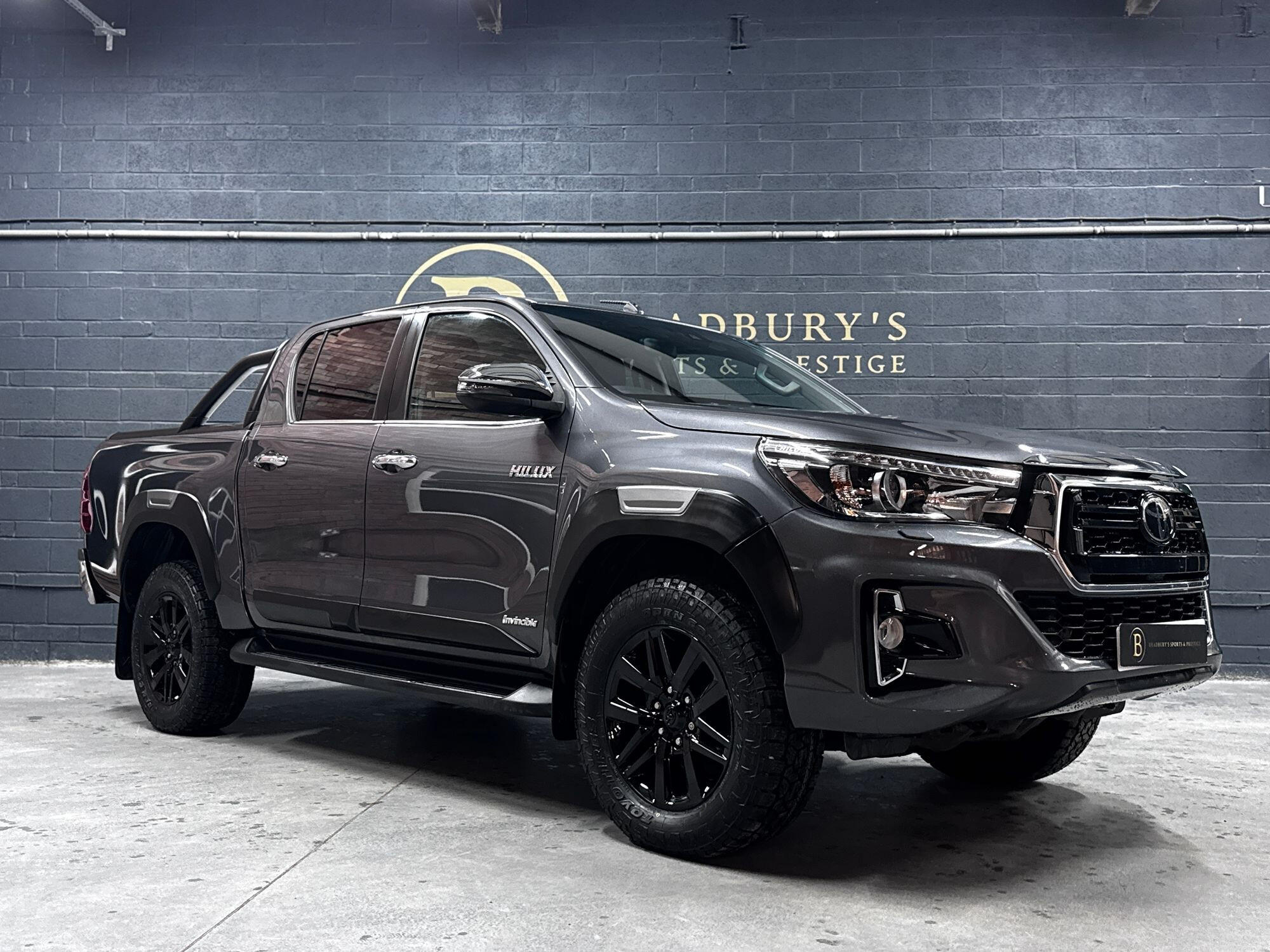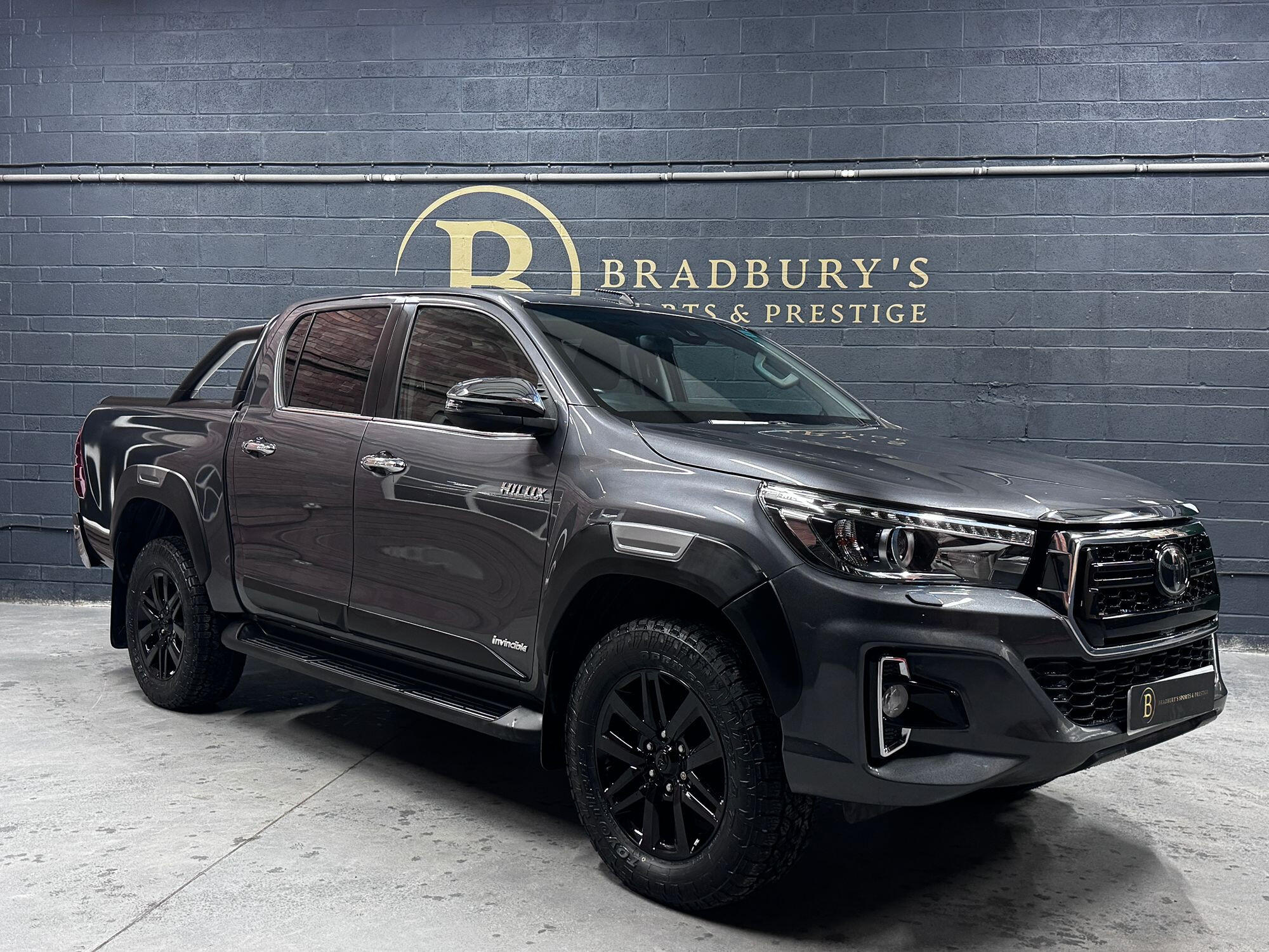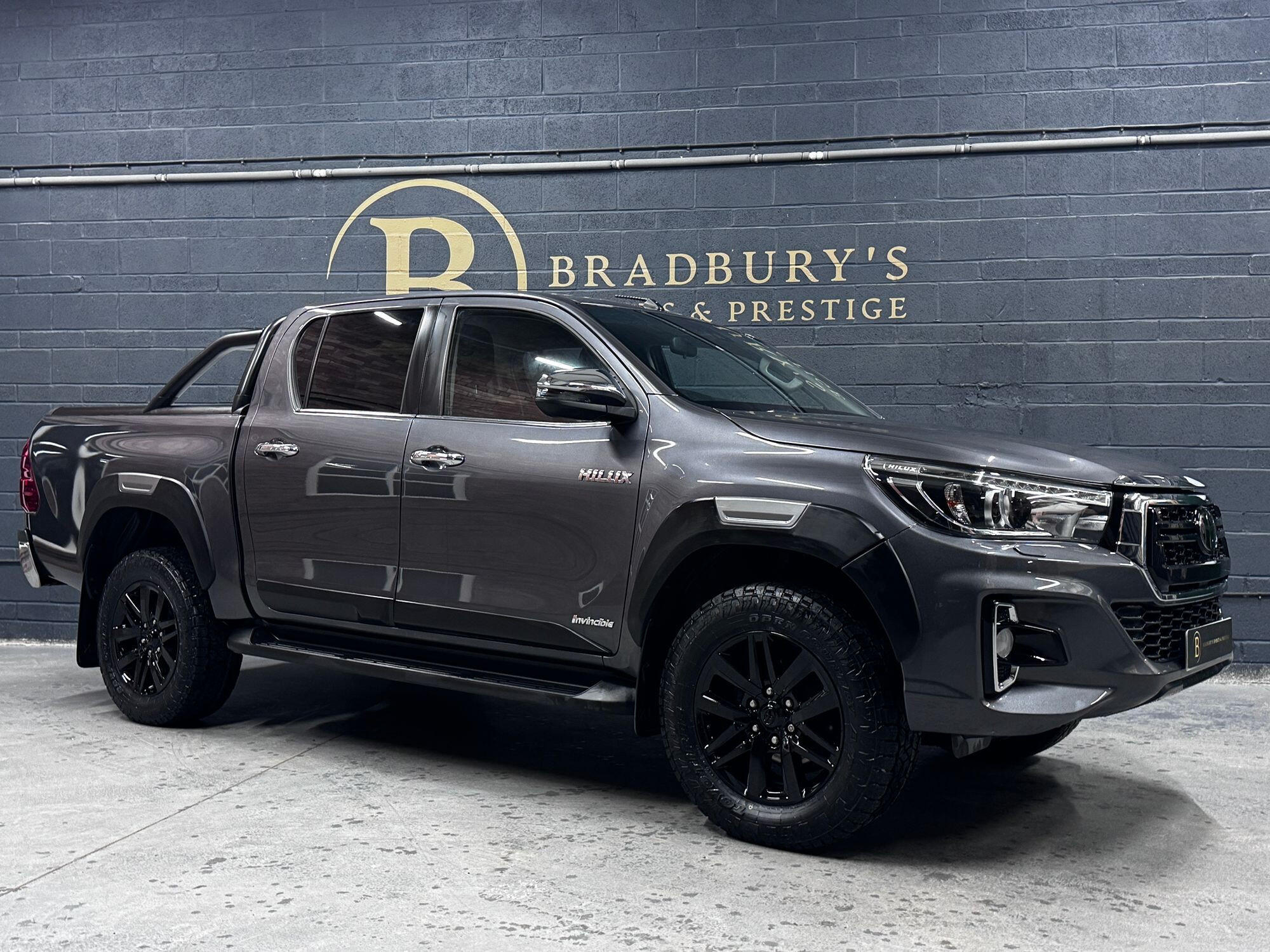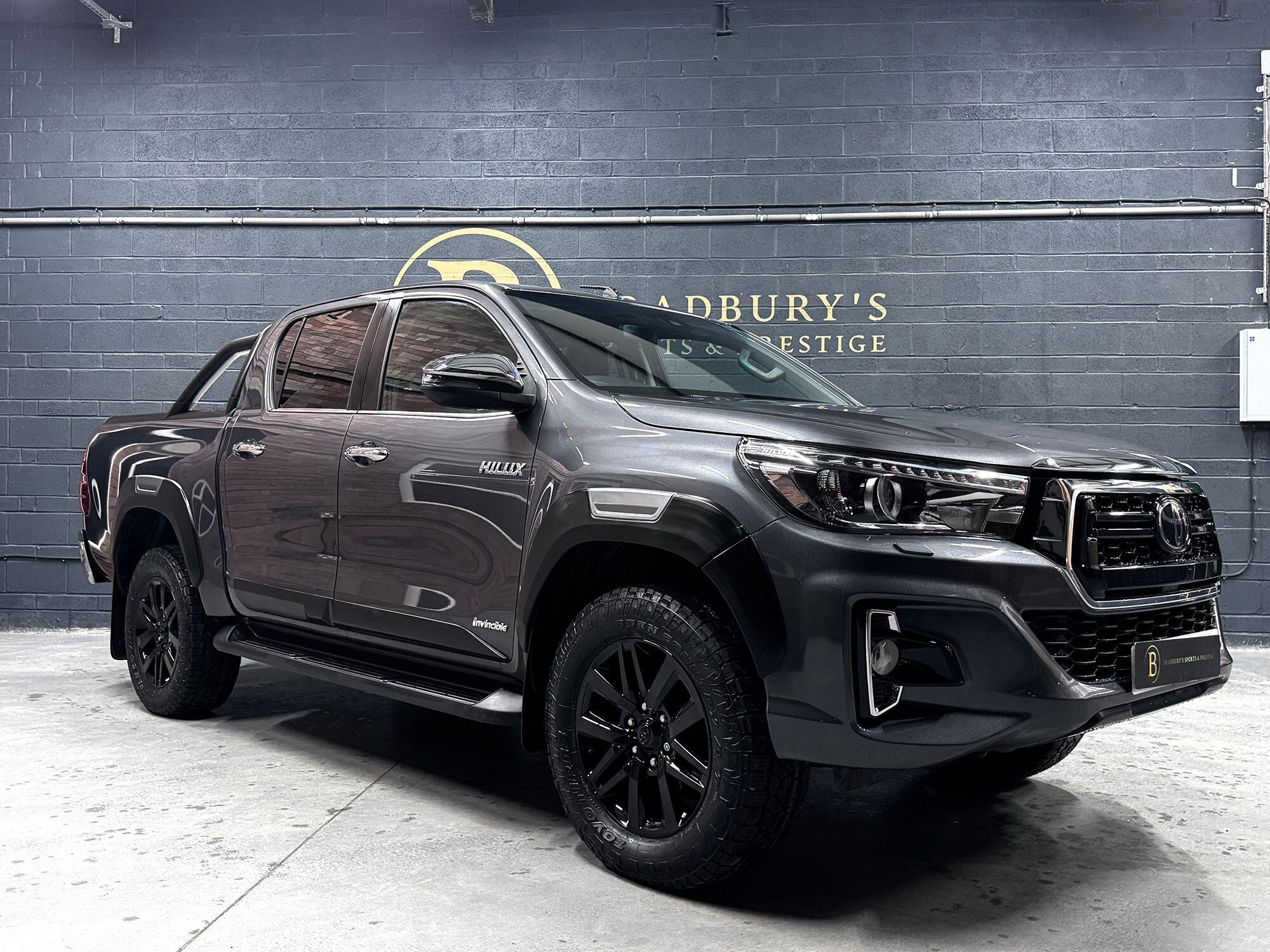 Bradburys Sports & Prestige are extremely proud to offer this absolutely stunning Toyota Hilux Invincible Auto finished in the beautiful shade of Grey Metallic. This is a beautifully specified vehicle, it is in truly fantastic condition and is one of the very best on the market. The car really is a testament to its 2 previous owner who have clearly proudly cherished and cared for the vehicle impeccably. The Vehicle has a comprehensive full service history with the latest service and mot having just been carried out. The vehicle comes fitted with the all important Toyota Mountain Top Roller shutter and black Roll Bars, Invincible X front bumper & wheel arches and upgraded brand new Toyo All Terrain tyres.
