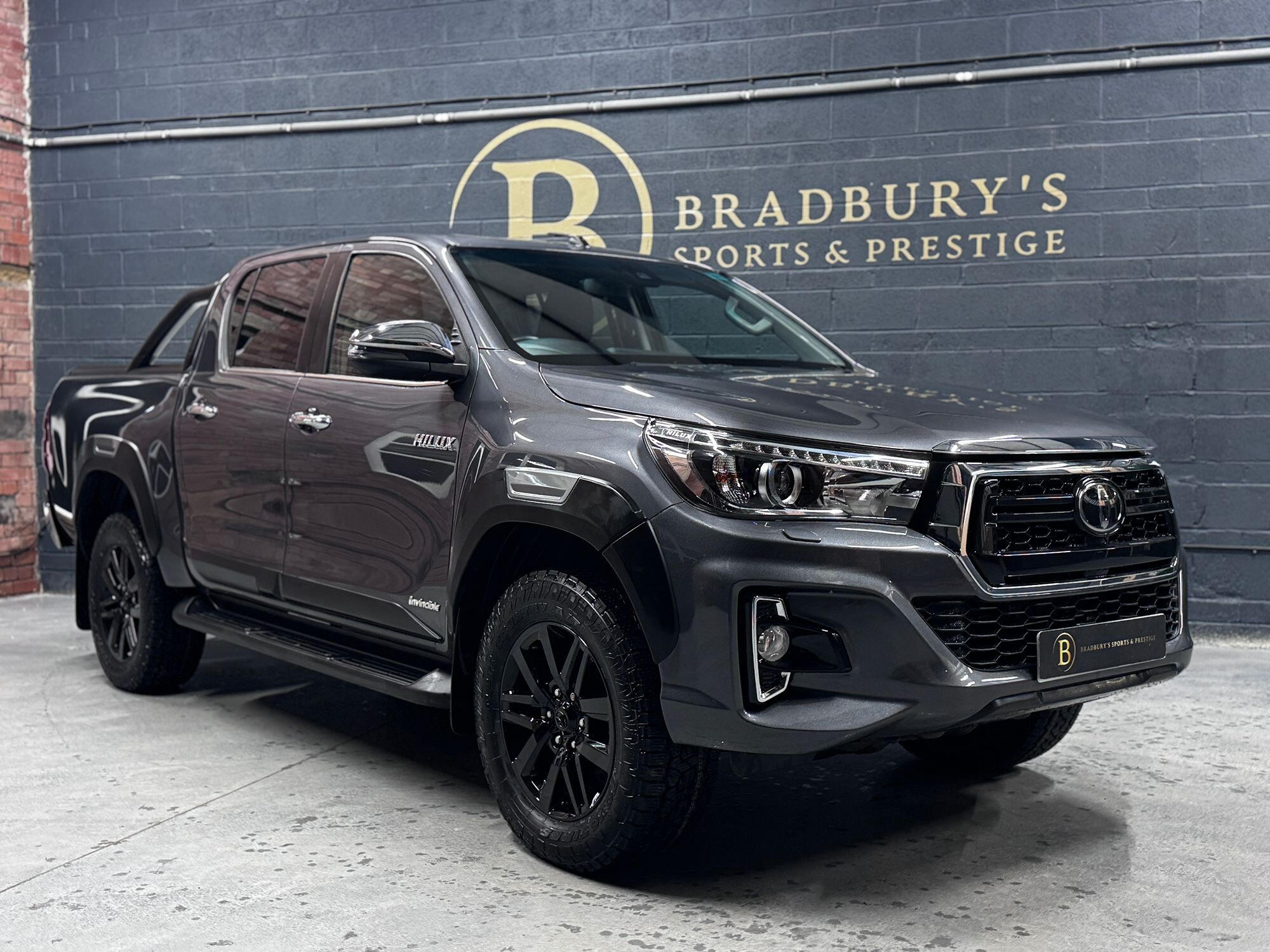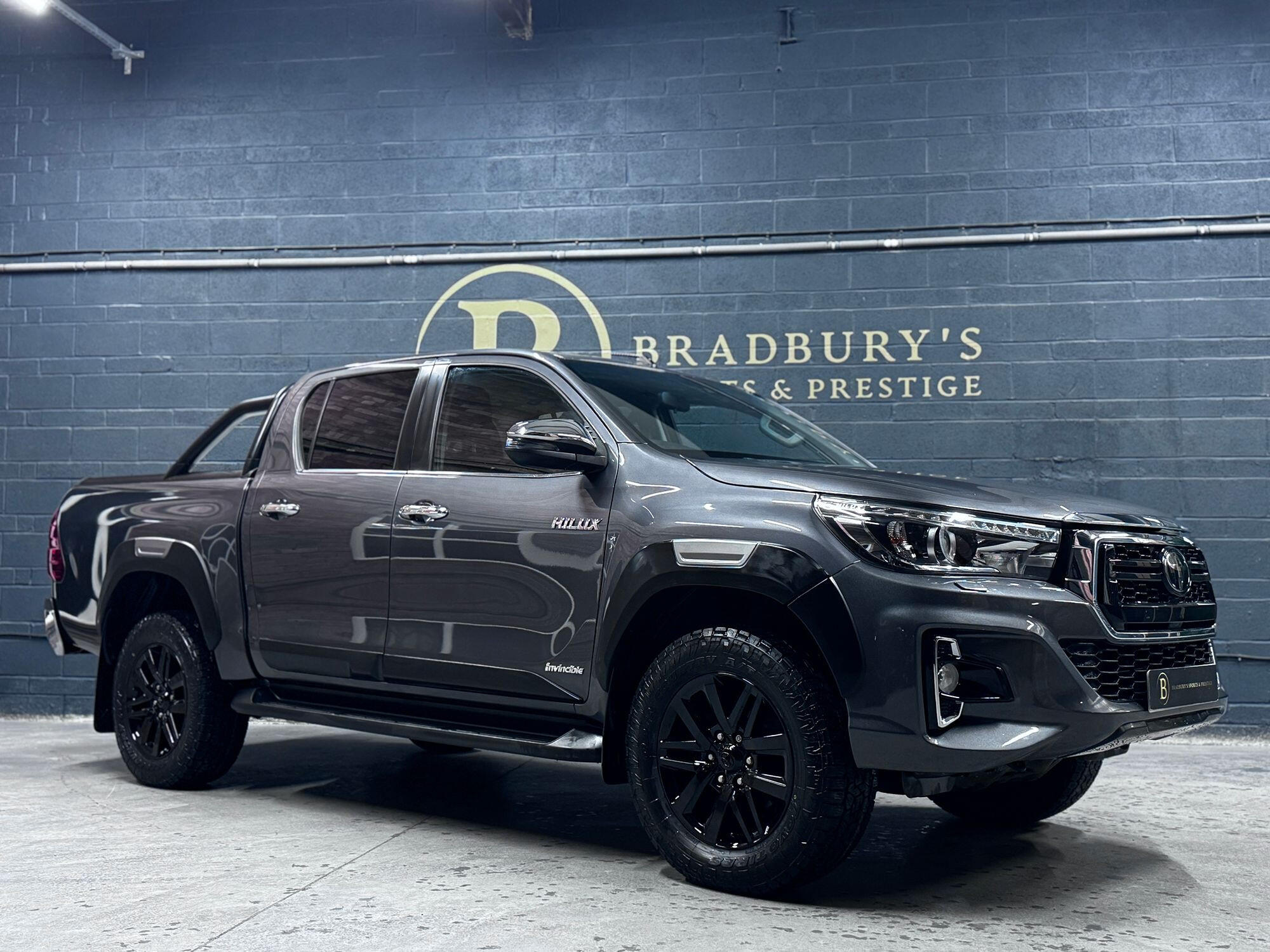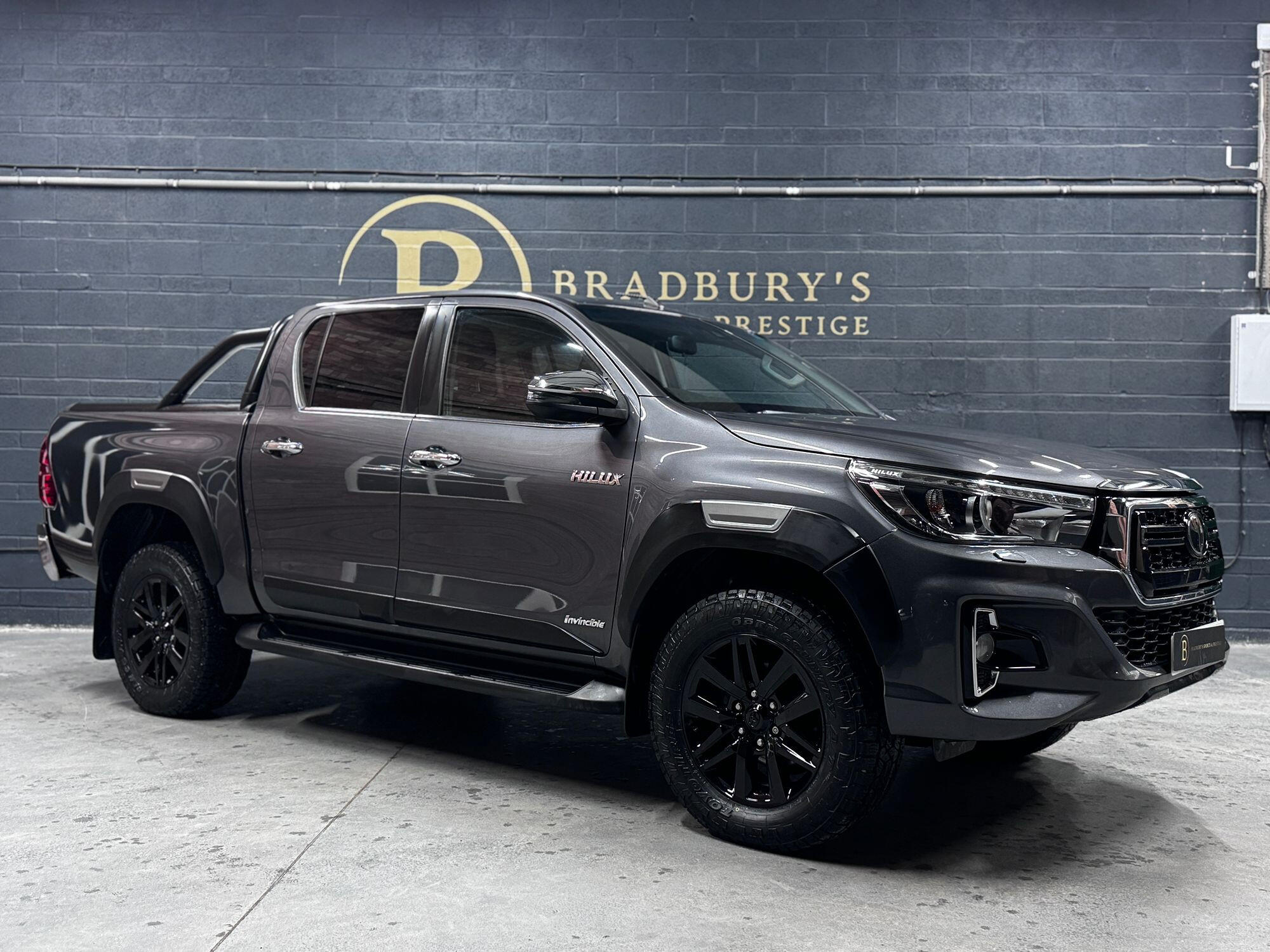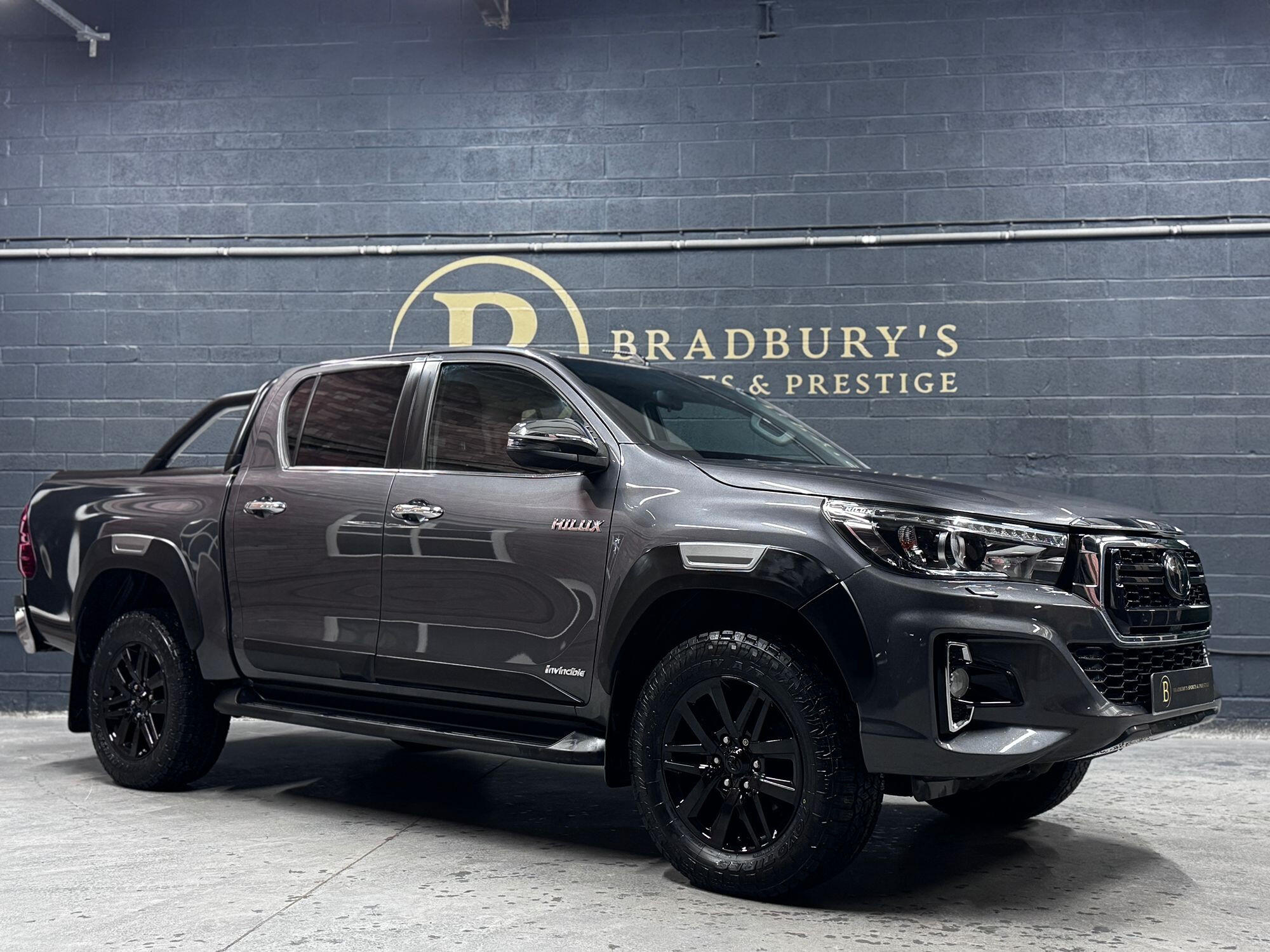 Bradburys Sports & Prestige are extremely proud to offer this absolutely stunning Toyota Hilux Invincible Auto finished in the beautiful shade of Grey Metallic. This is a beautifully specified vehicle, it is in truly fantastic condition and is one of the very best on the market. The car really is a testament to its 2 previous owner who have clearly proudly cherished and cared for the vehicle impeccably. The Vehicle has a comprehensive full service history with the latest service and mot having just been carried out. The vehicle comes fitted with the all important Toyota Mountain Top Roller shutter and black Roll Bars, Invincible X front bumper & wheel arches and upgraded brand new Toyo All Terrain tyres.