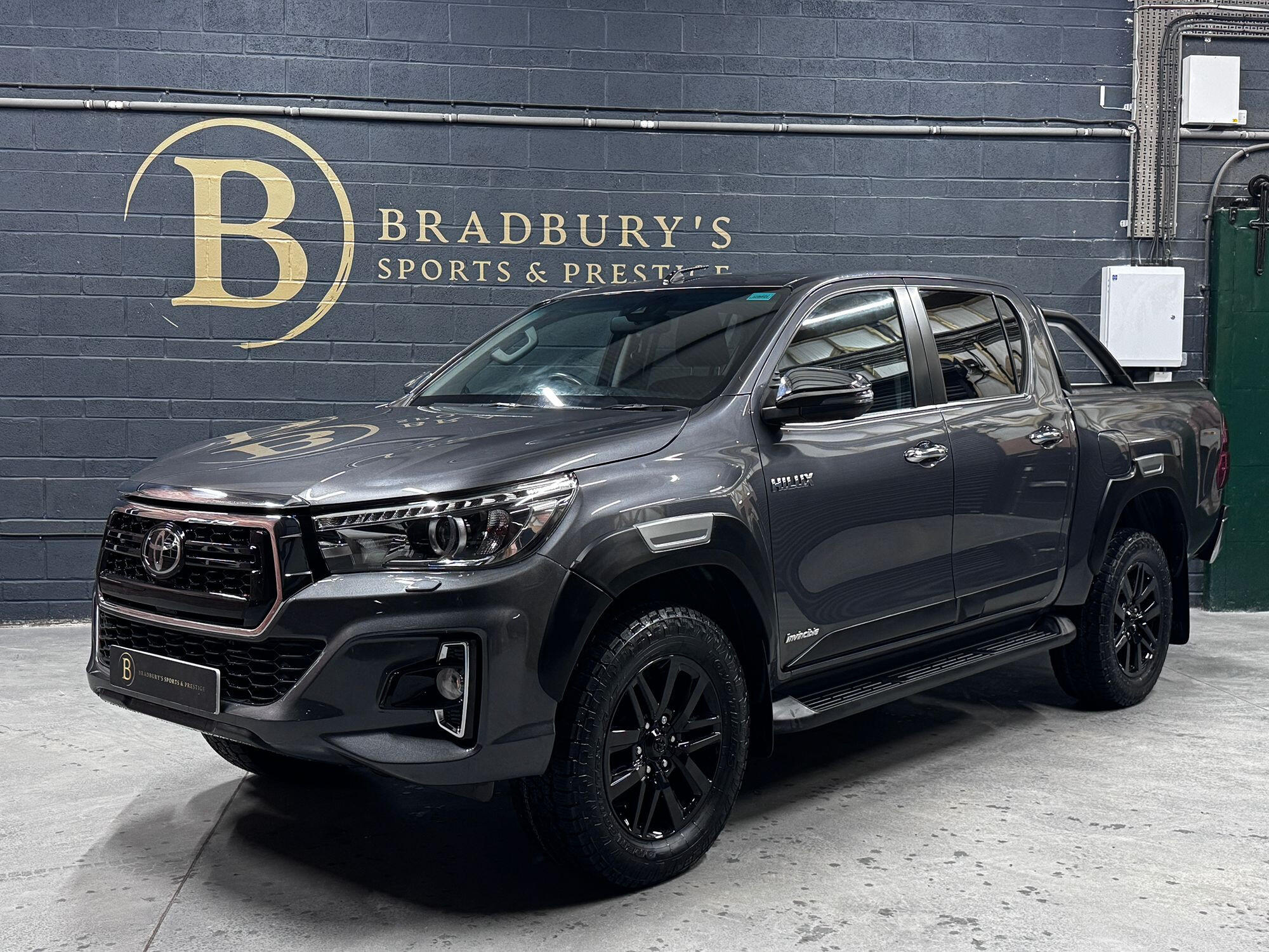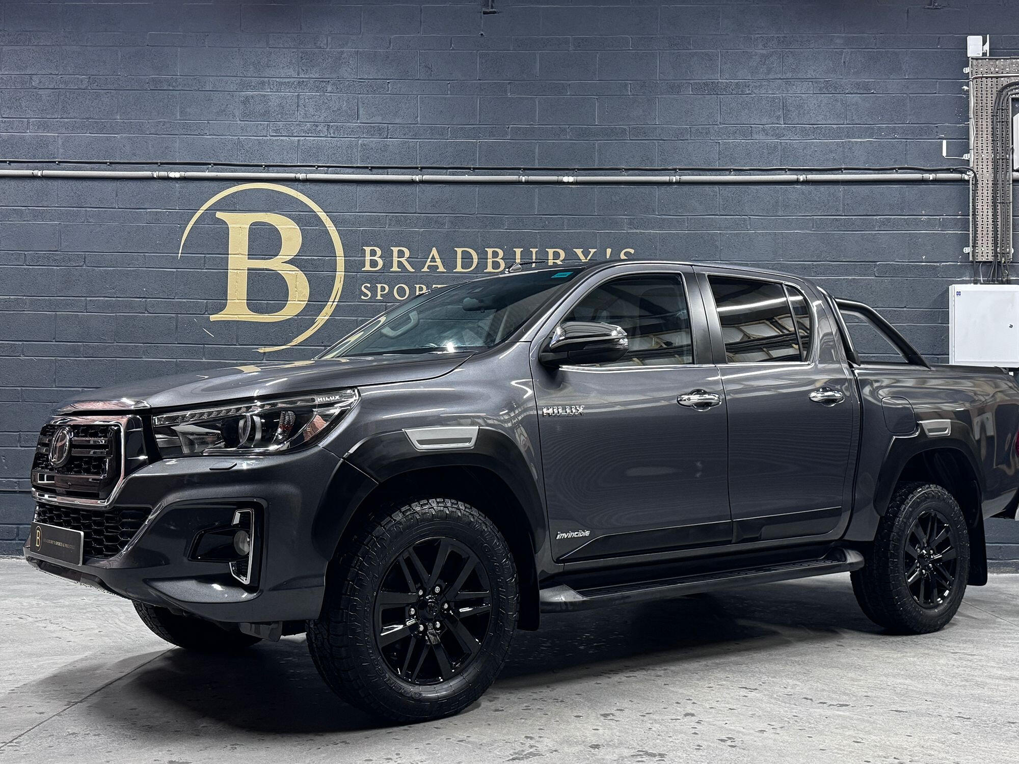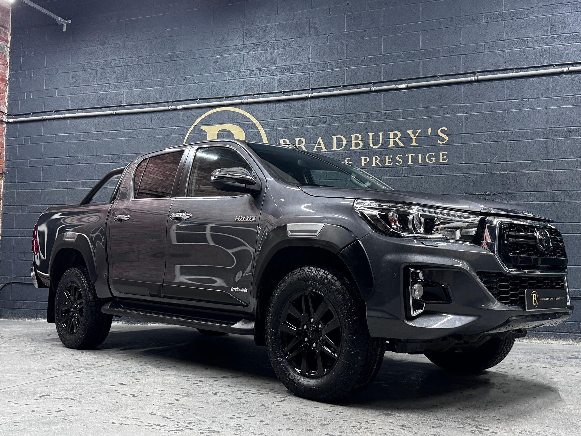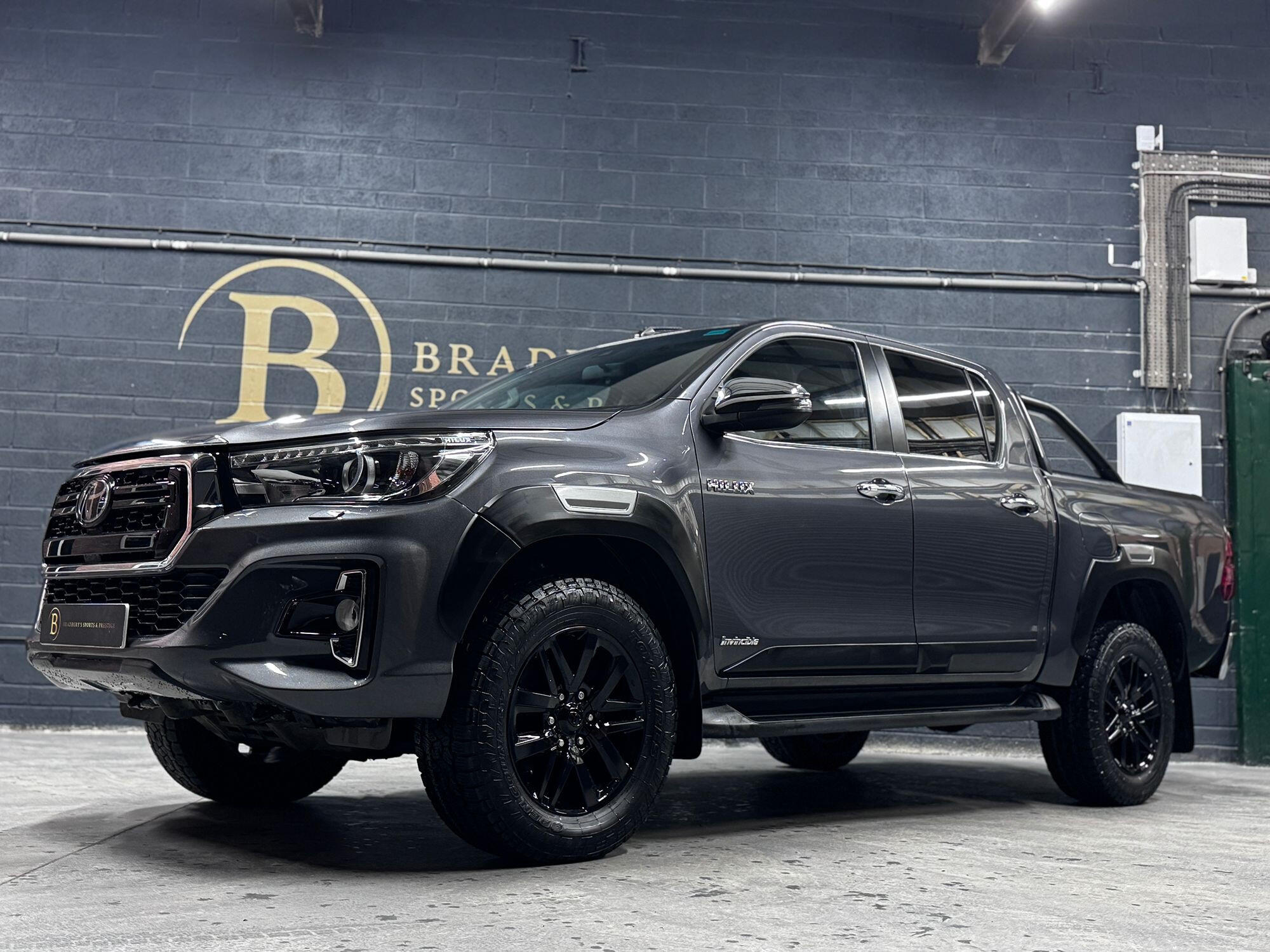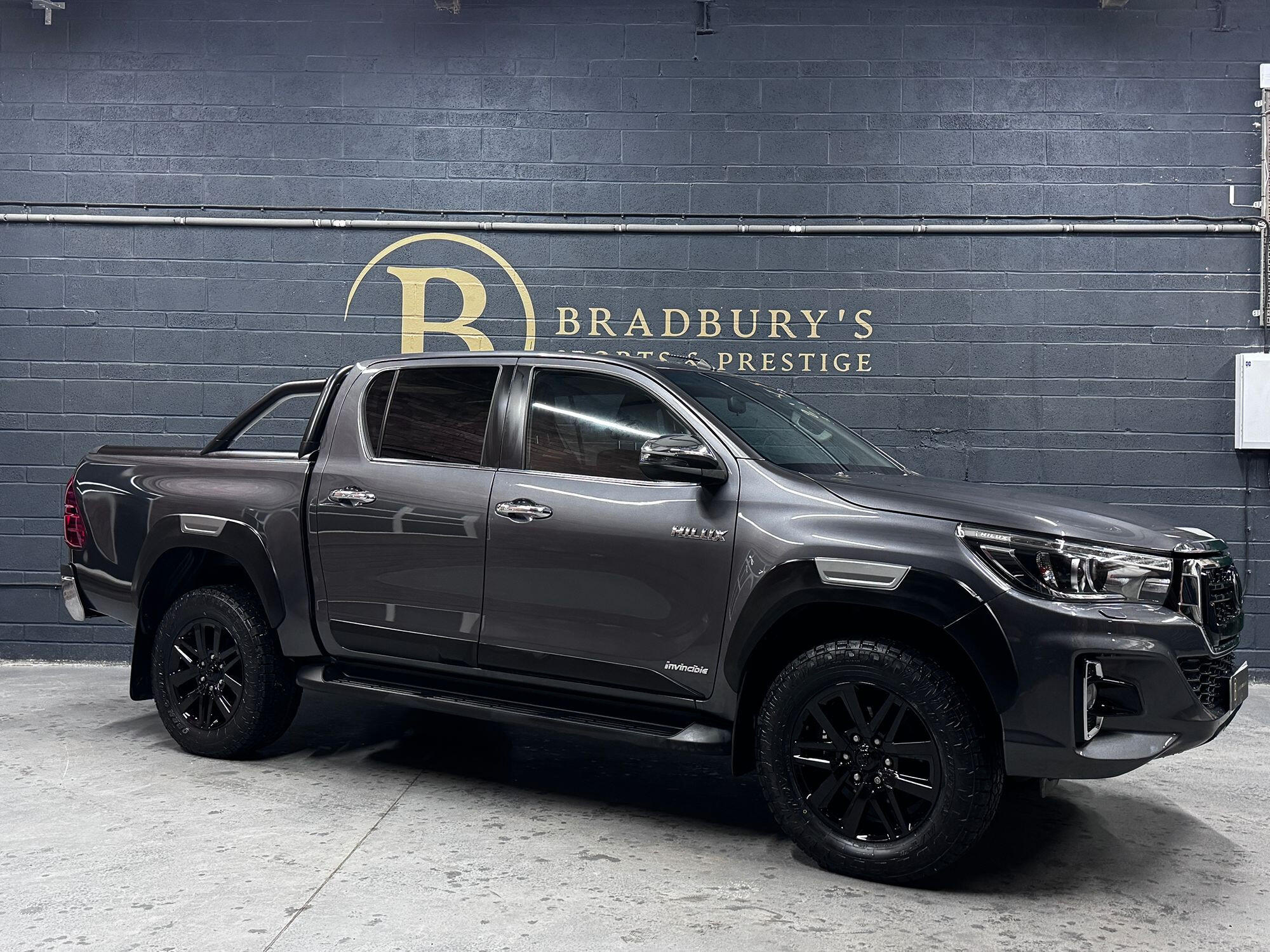 Bradburys Sports & Prestige are extremely proud to offer this absolutely stunning Toyota Hilux Invincible Auto finished in the beautiful shade of Grey Metallic. This is a beautifully specified vehicle, it is in truly fantastic condition and is one of the very best on the market. The car really is a testament to its 2 previous owner who have clearly proudly cherished and cared for the vehicle impeccably. The Vehicle has a comprehensive full service history with the latest service and mot having just been carried out. The vehicle comes fitted with the all important Toyota Mountain Top Roller shutter and black Roll Bars, Invincible X front bumper & wheel arches and upgraded brand new Toyo All Terrain tyres.