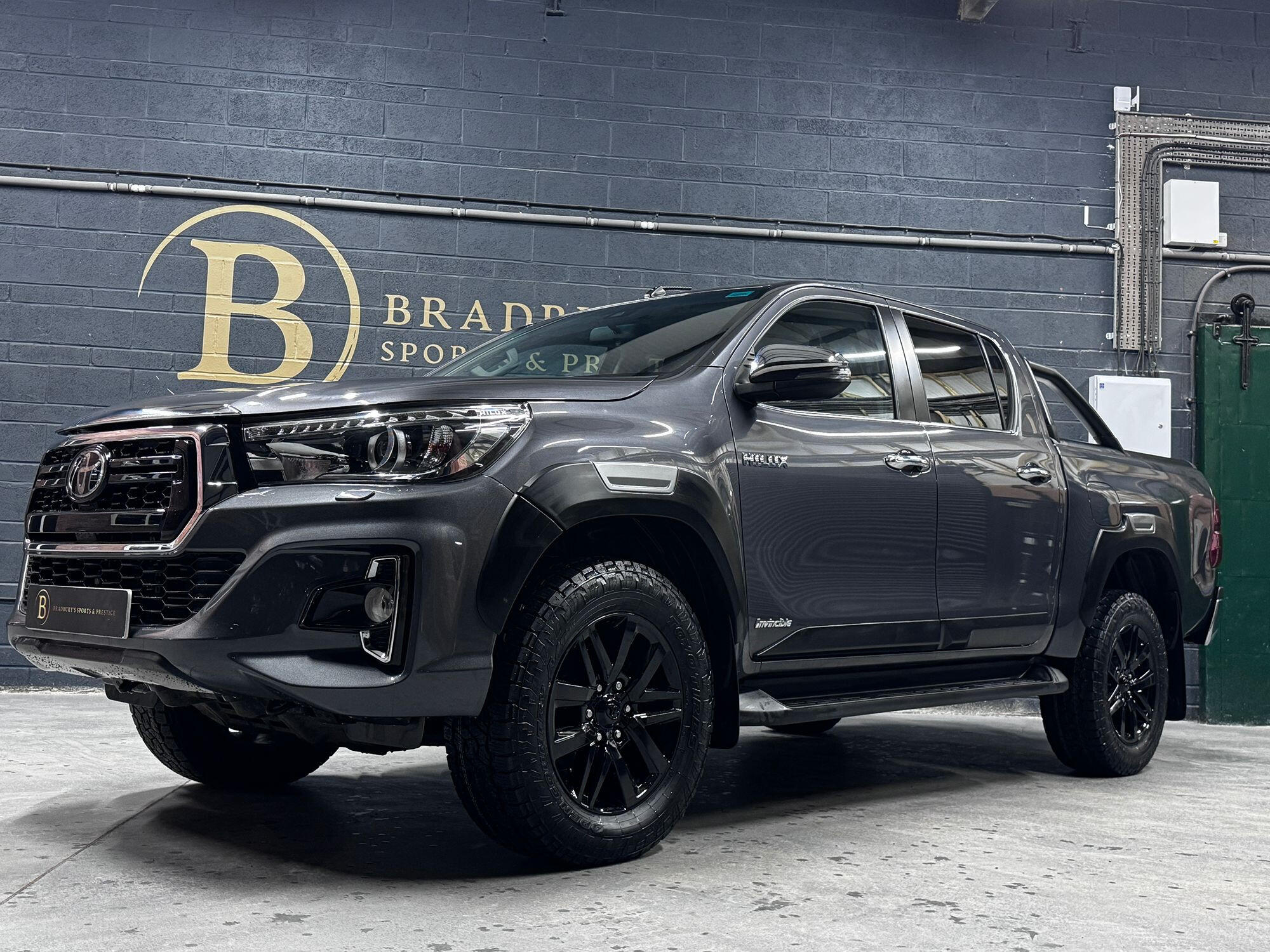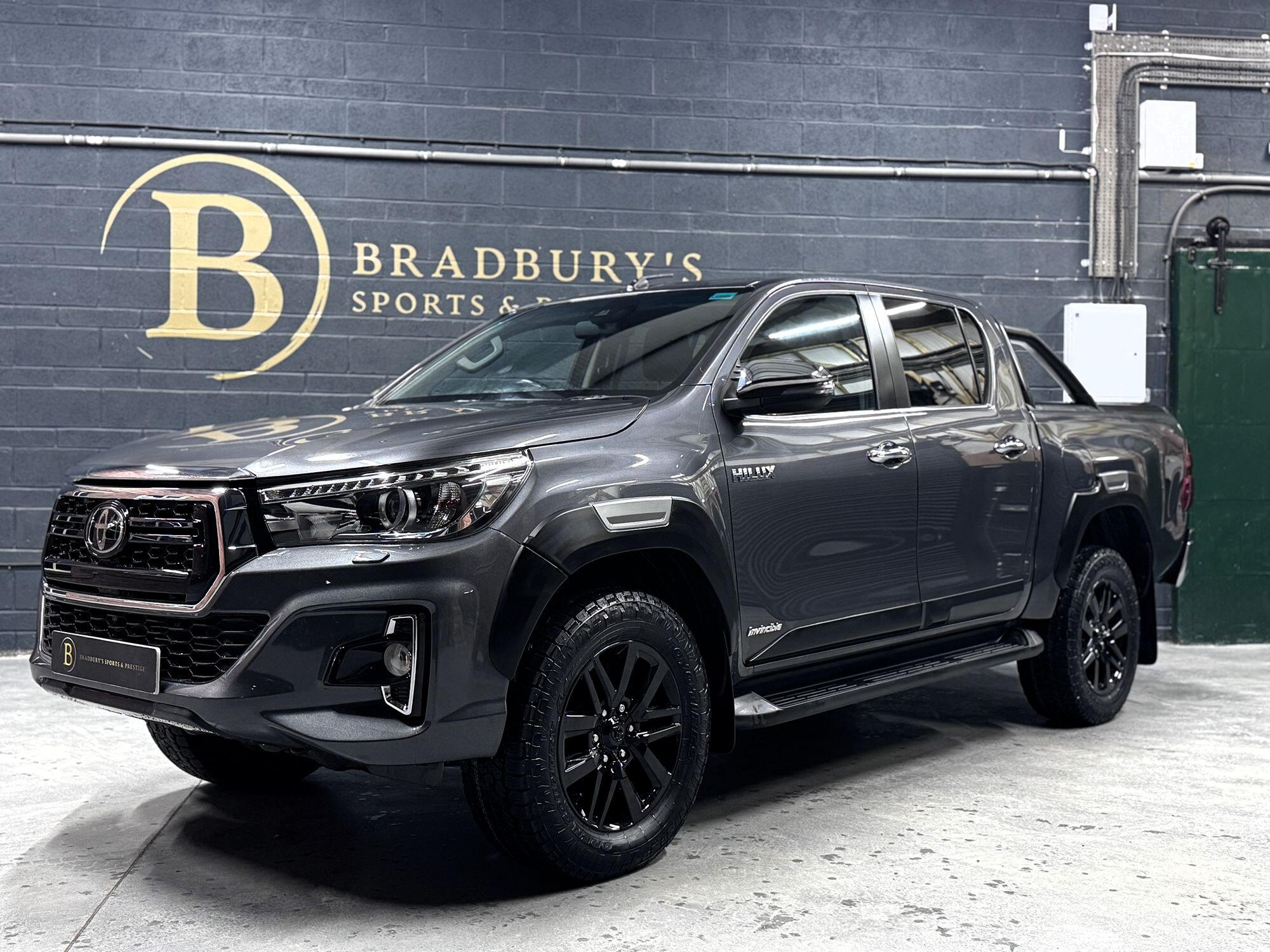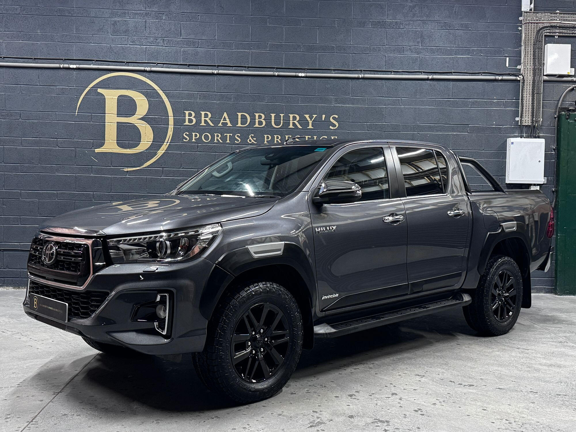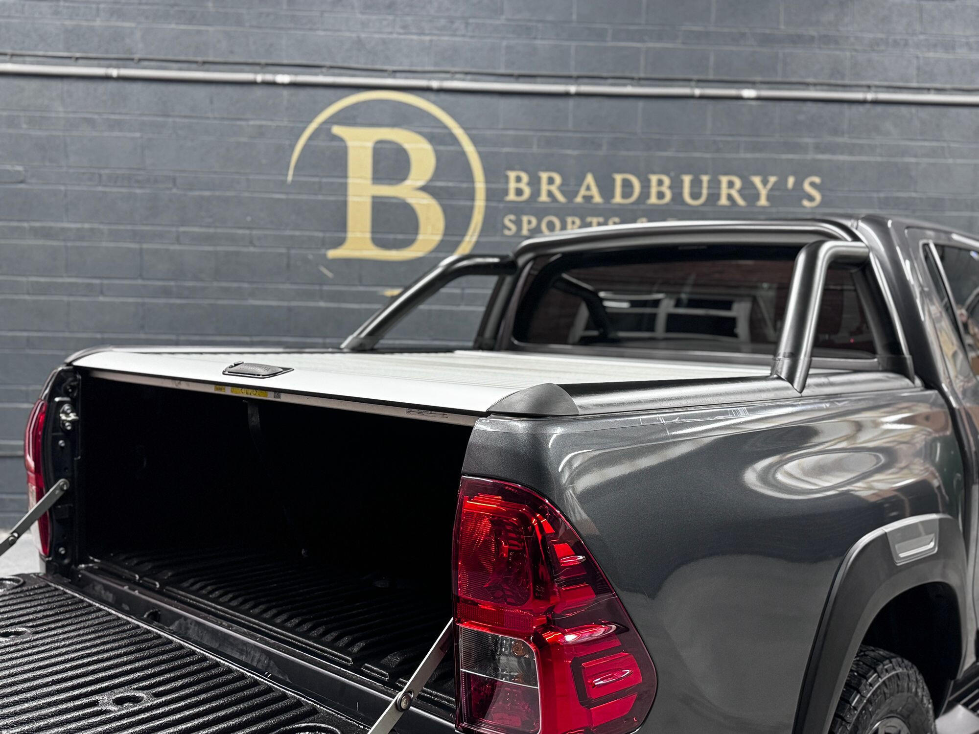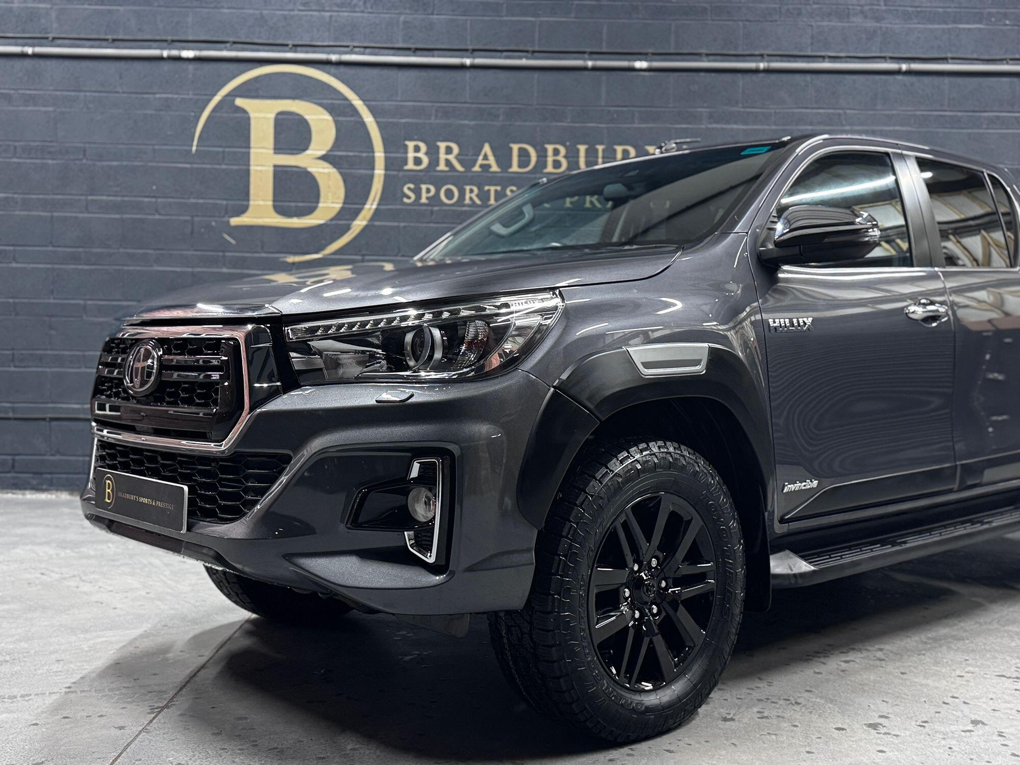 Bradburys Sports & Prestige are extremely proud to offer this absolutely stunning Toyota Hilux Invincible Auto finished in the beautiful shade of Grey Metallic. This is a beautifully specified vehicle, it is in truly fantastic condition and is one of the very best on the market. The car really is a testament to its 2 previous owner who have clearly proudly cherished and cared for the vehicle impeccably. The Vehicle has a comprehensive full service history with the latest service and mot having just been carried out. The vehicle comes fitted with the all important Toyota Mountain Top Roller shutter and black Roll Bars, Invincible X front bumper & wheel arches and upgraded brand new Toyo All Terrain tyres.