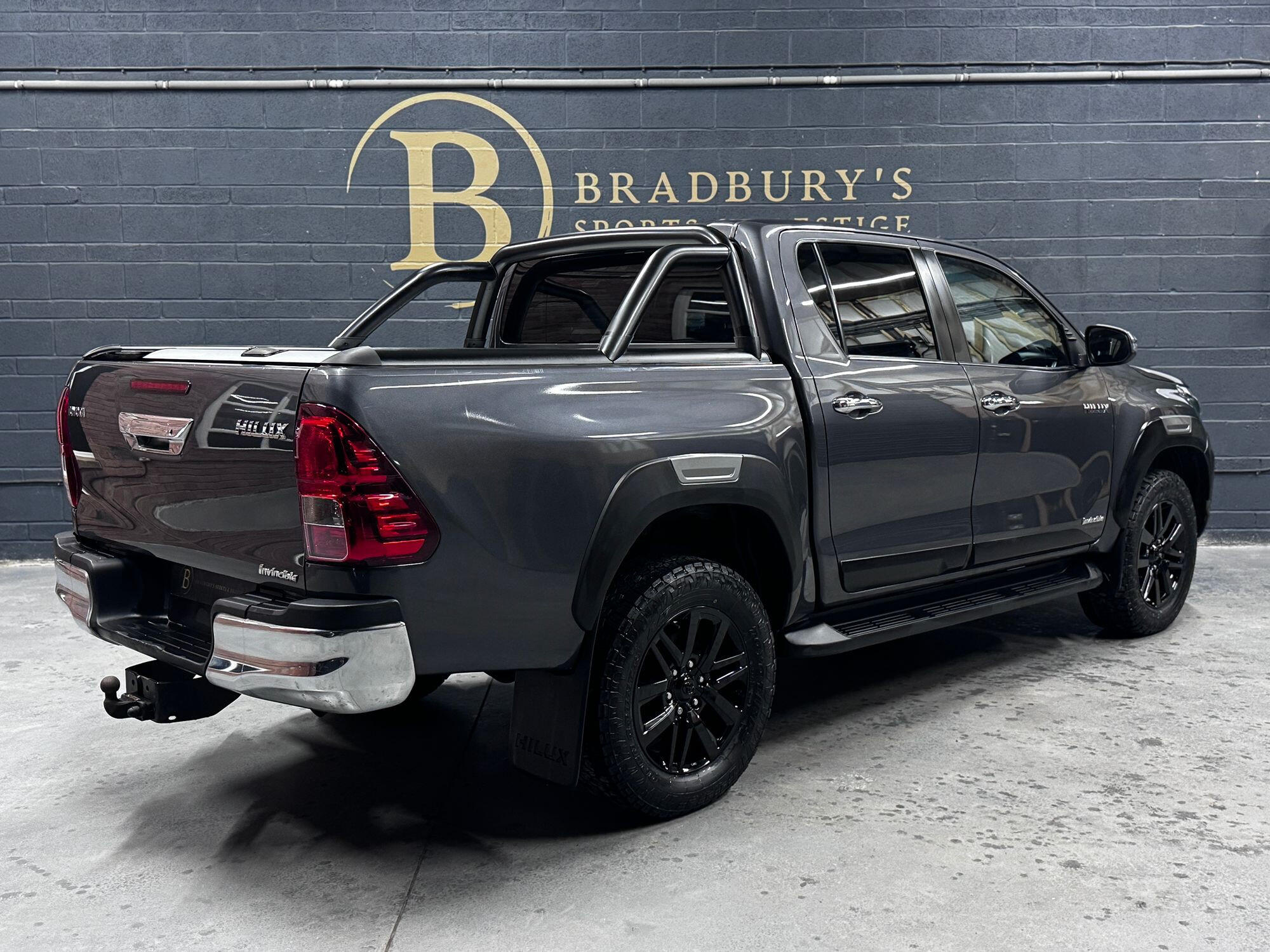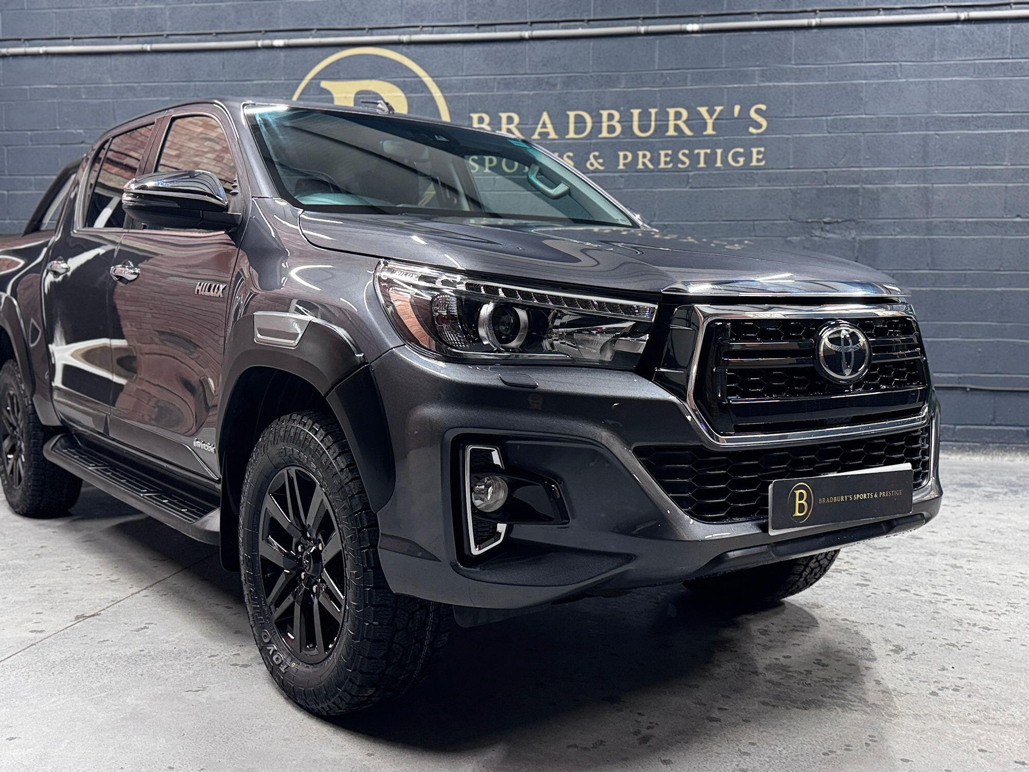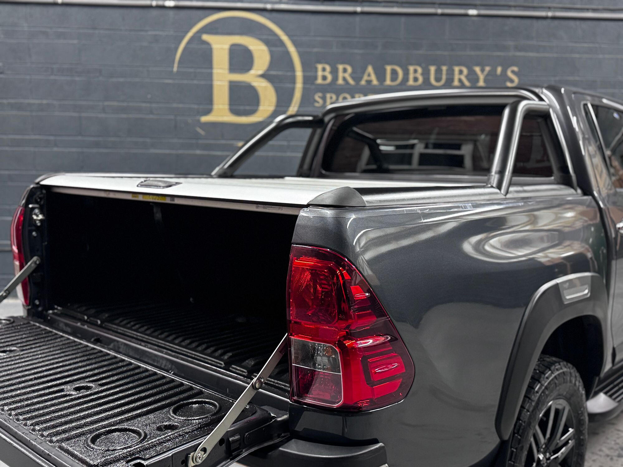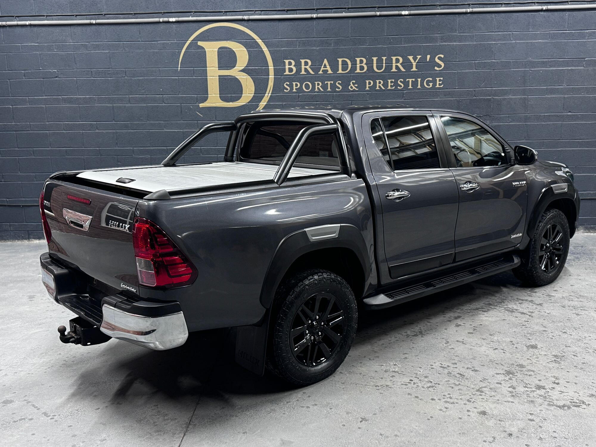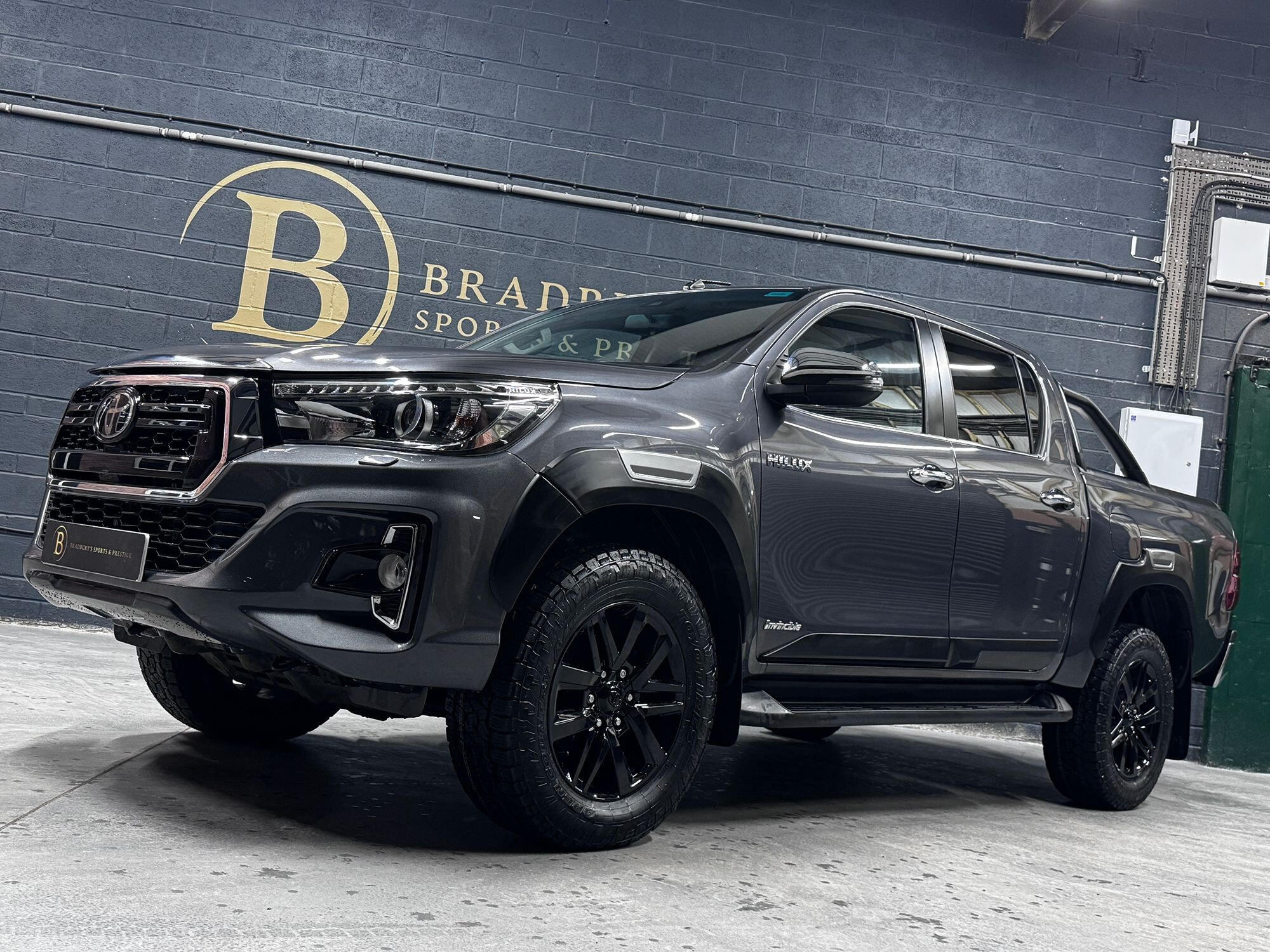 Bradburys Sports & Prestige are extremely proud to offer this absolutely stunning Toyota Hilux Invincible Auto finished in the beautiful shade of Grey Metallic. This is a beautifully specified vehicle, it is in truly fantastic condition and is one of the very best on the market. The car really is a testament to its 2 previous owner who have clearly proudly cherished and cared for the vehicle impeccably. The Vehicle has a comprehensive full service history with the latest service and mot having just been carried out. The vehicle comes fitted with the all important Toyota Mountain Top Roller shutter and black Roll Bars, Invincible X front bumper & wheel arches and upgraded brand new Toyo All Terrain tyres.