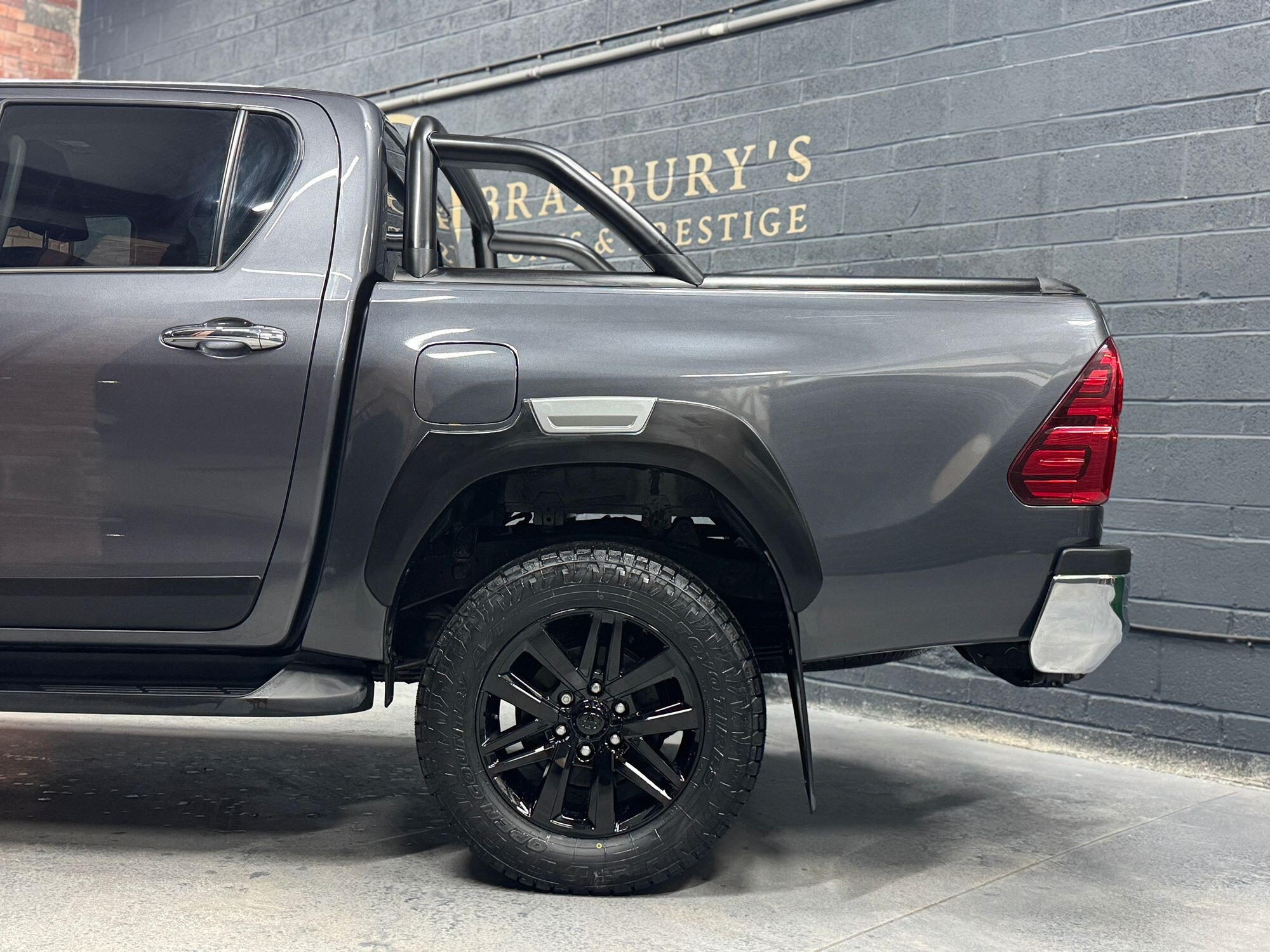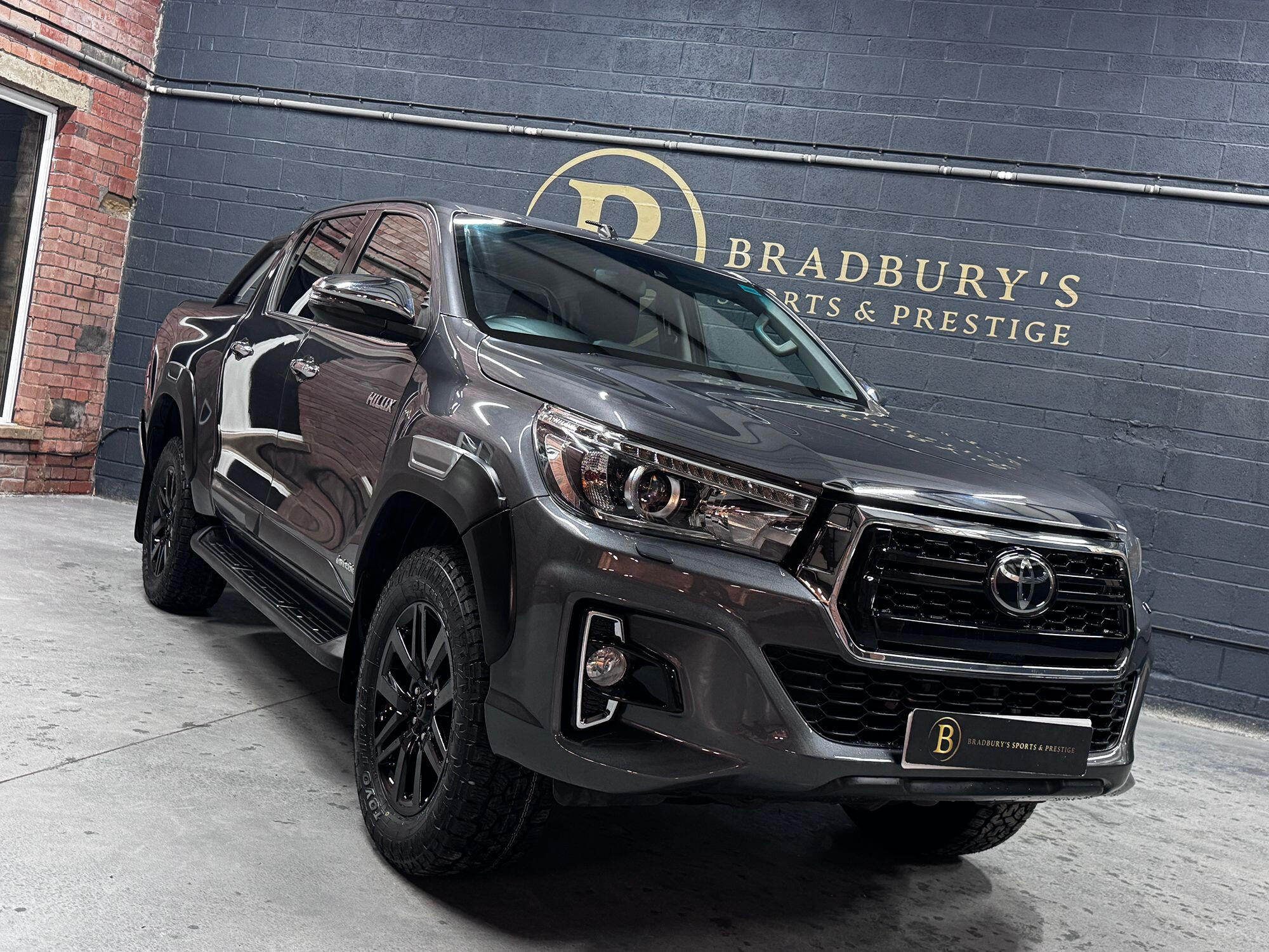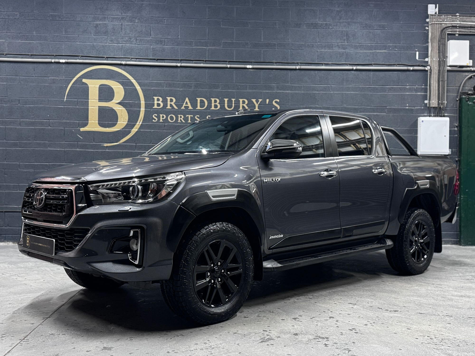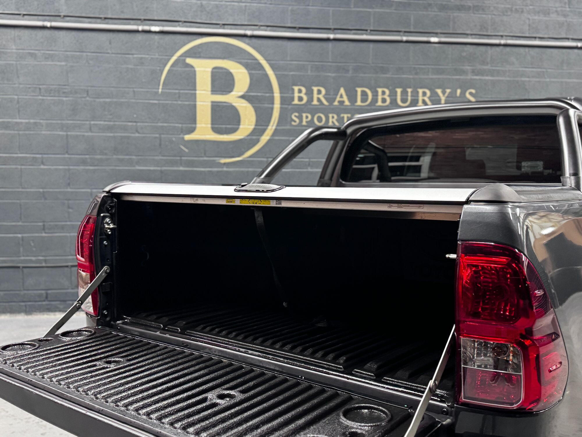 Bradburys Sports & Prestige are extremely proud to offer this absolutely stunning Toyota Hilux Invincible Auto finished in the beautiful shade of Grey Metallic. This is a beautifully specified vehicle, it is in truly fantastic condition and is one of the very best on the market. The car really is a testament to its 2 previous owner who have clearly proudly cherished and cared for the vehicle impeccably. The Vehicle has a comprehensive full service history with the latest service and mot having just been carried out. The vehicle comes fitted with the all important Toyota Mountain Top Roller shutter and black Roll Bars, Invincible X front bumper & wheel arches and upgraded brand new Toyo All Terrain tyres.