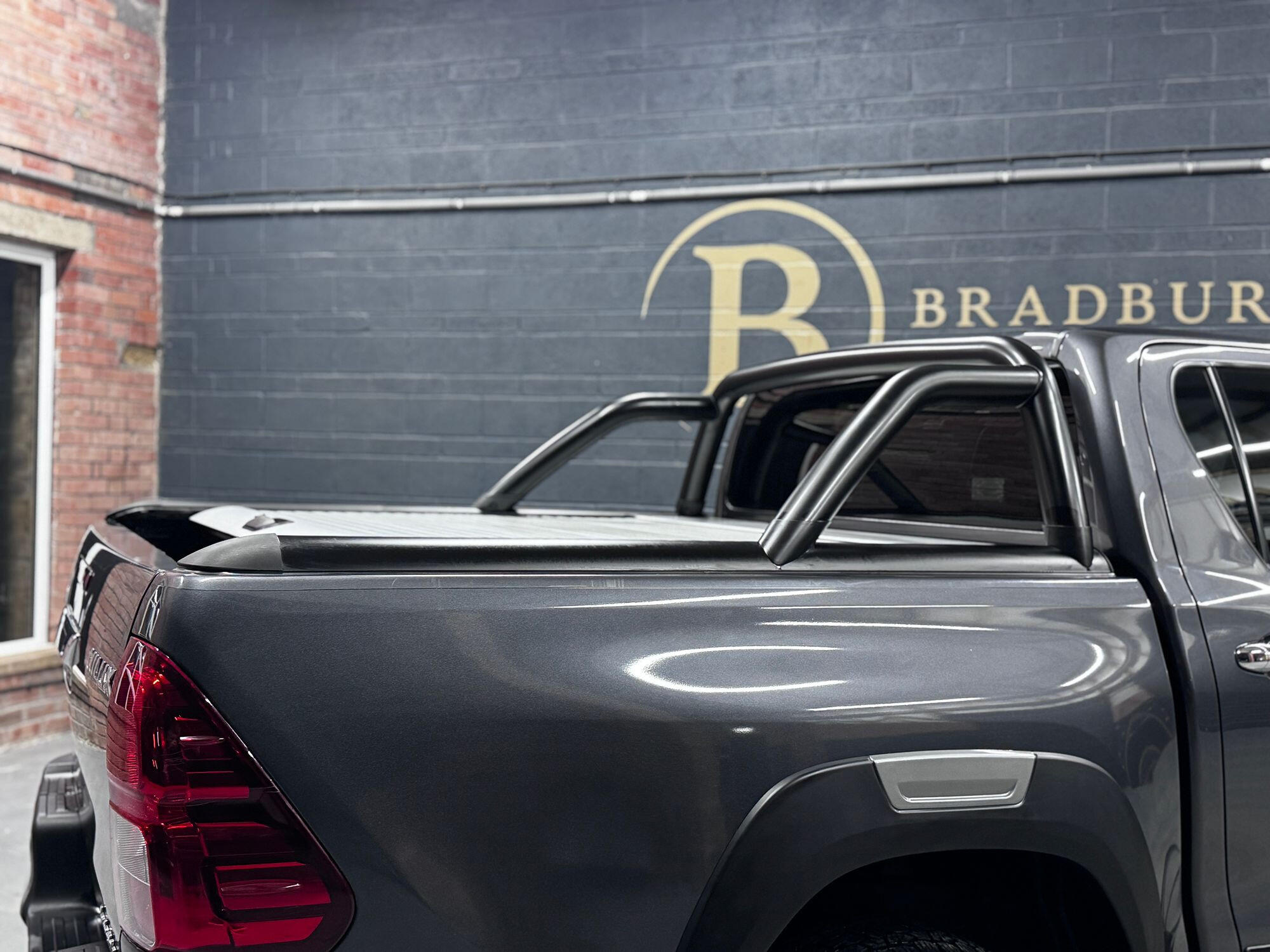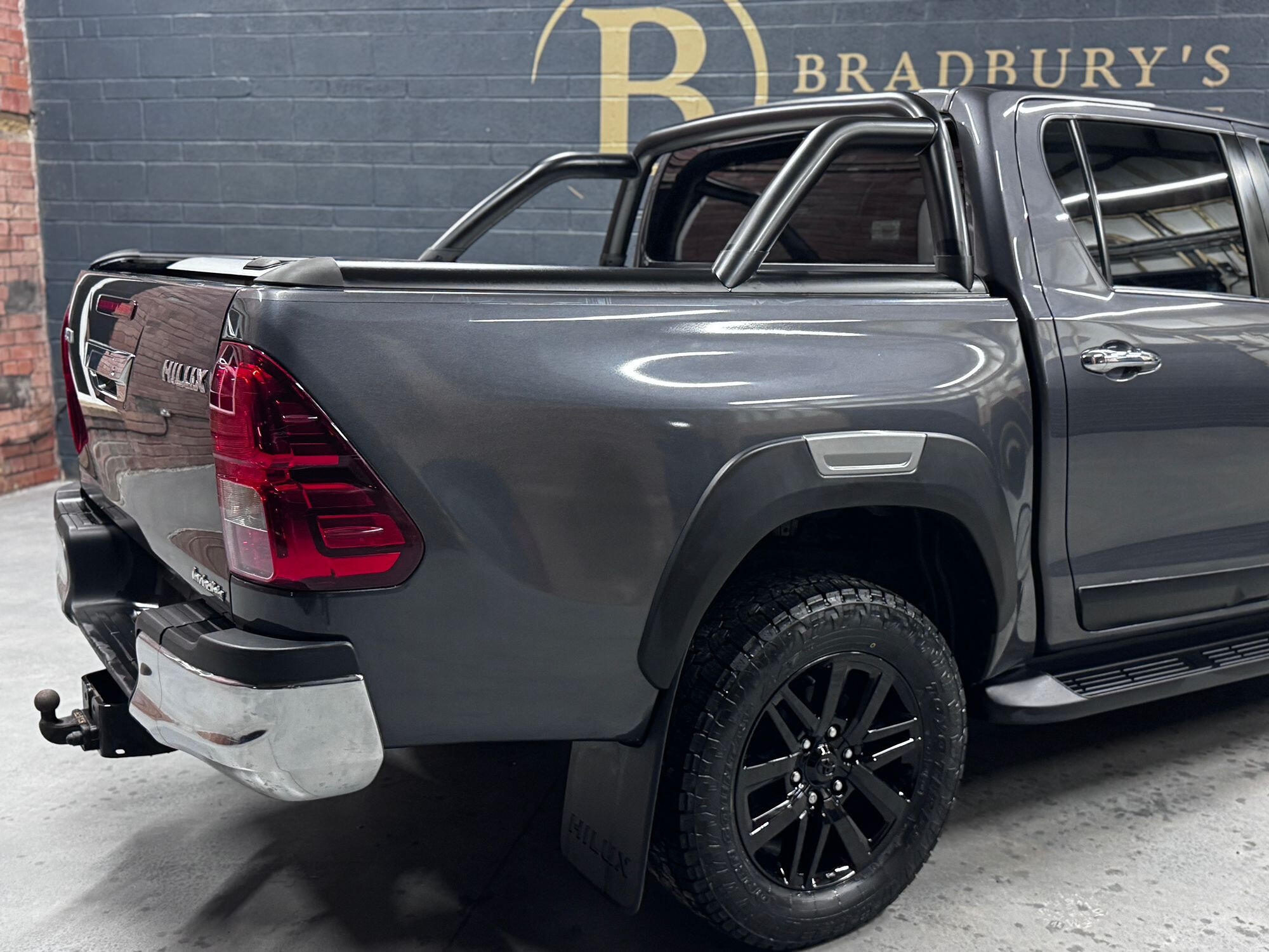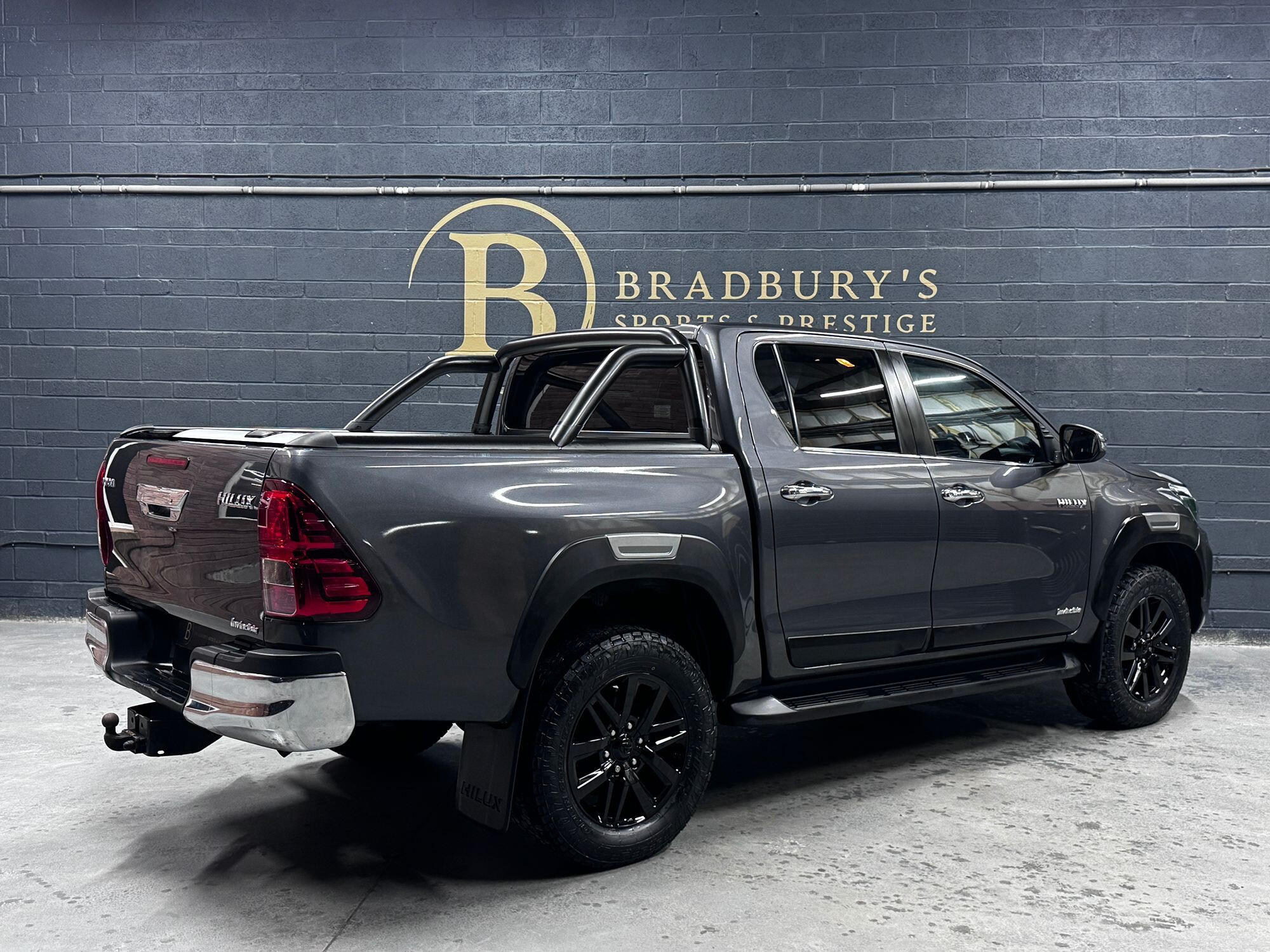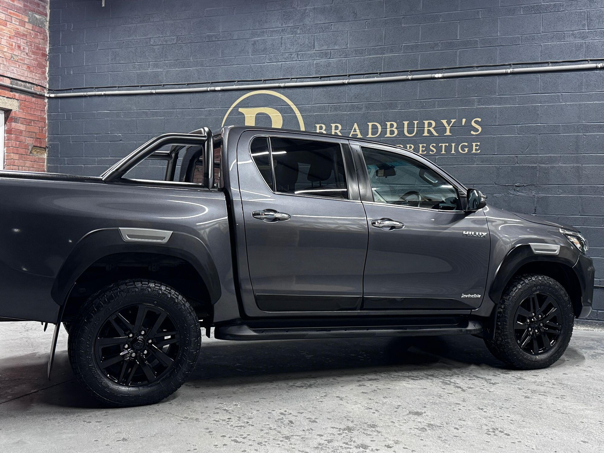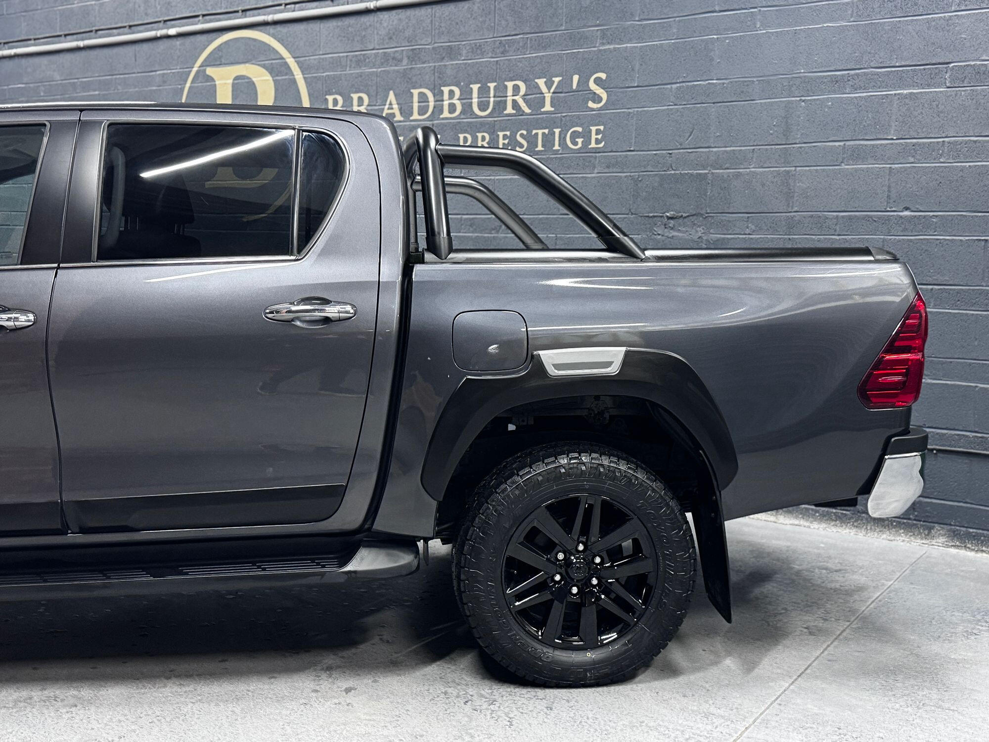 Bradburys Sports & Prestige are extremely proud to offer this absolutely stunning Toyota Hilux Invincible Auto finished in the beautiful shade of Grey Metallic. This is a beautifully specified vehicle, it is in truly fantastic condition and is one of the very best on the market. The car really is a testament to its 2 previous owner who have clearly proudly cherished and cared for the vehicle impeccably. The Vehicle has a comprehensive full service history with the latest service and mot having just been carried out. The vehicle comes fitted with the all important Toyota Mountain Top Roller shutter and black Roll Bars, Invincible X front bumper & wheel arches and upgraded brand new Toyo All Terrain tyres.