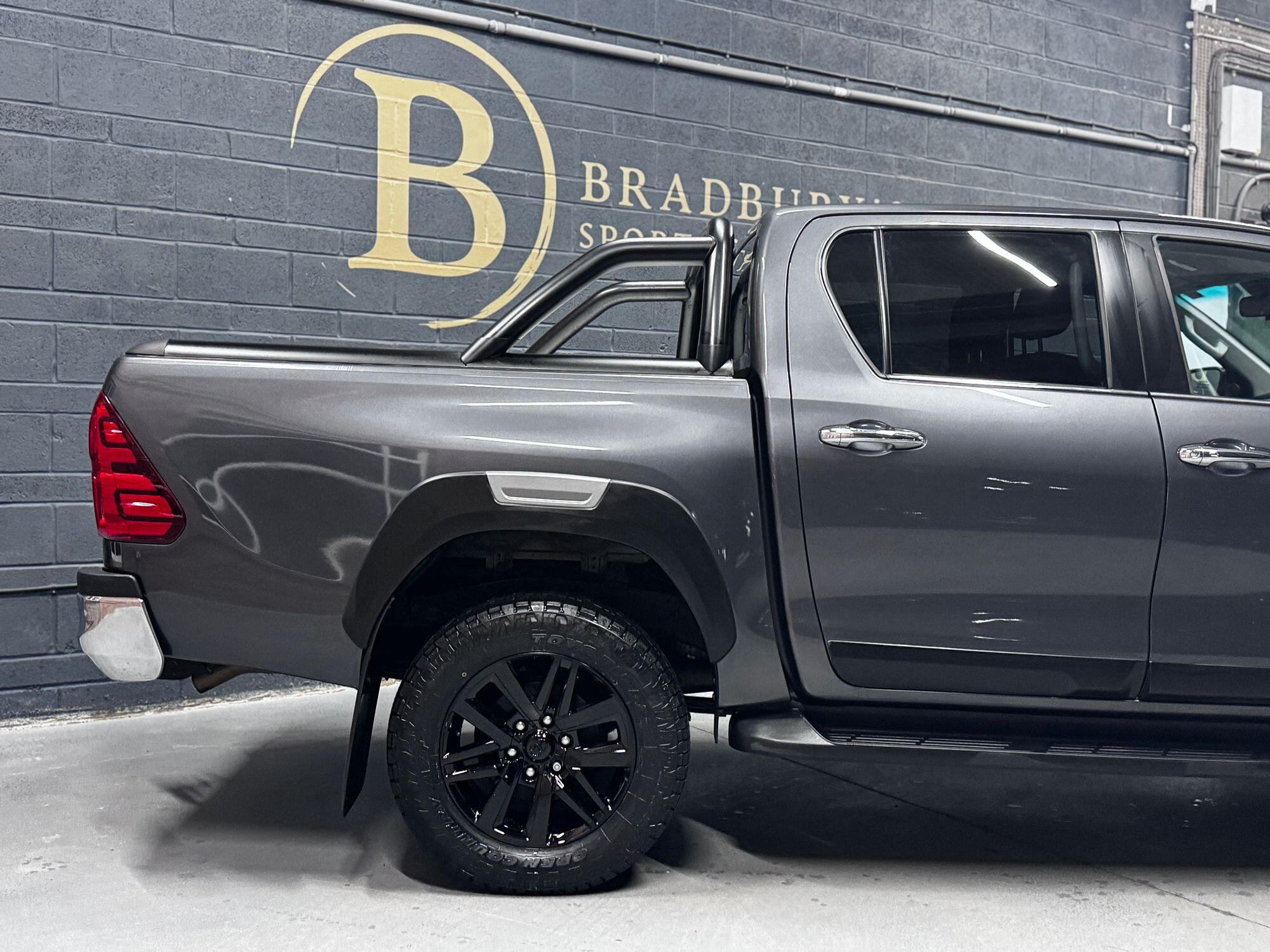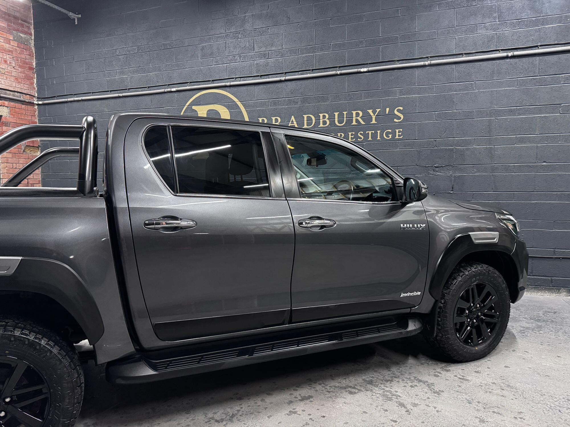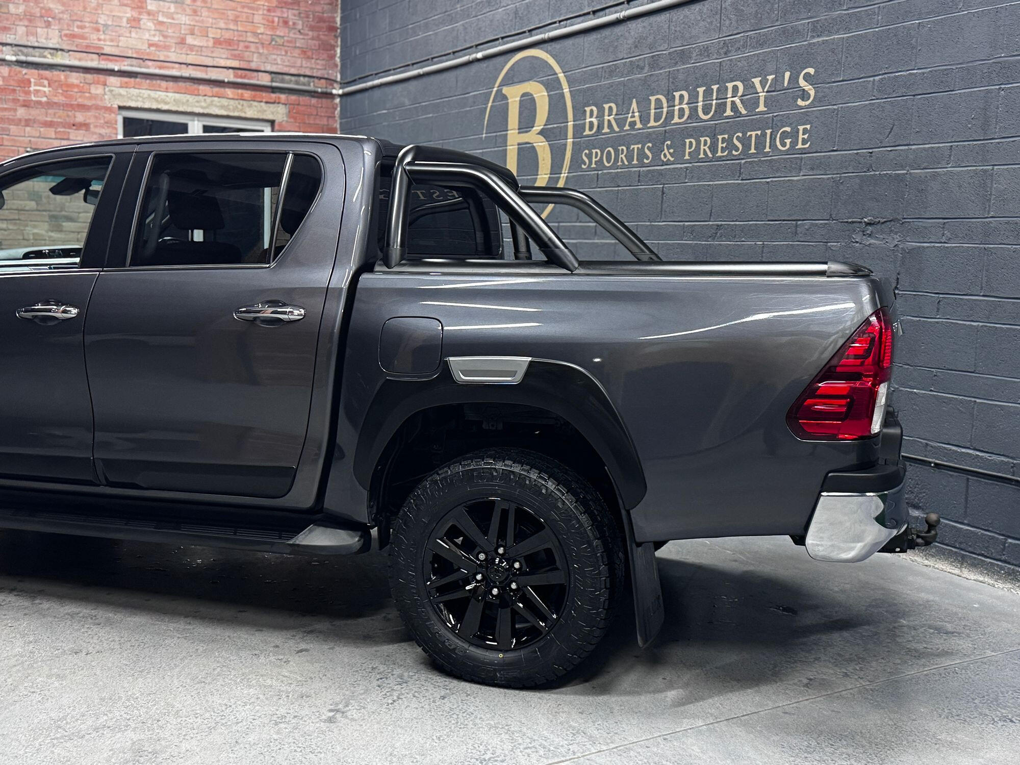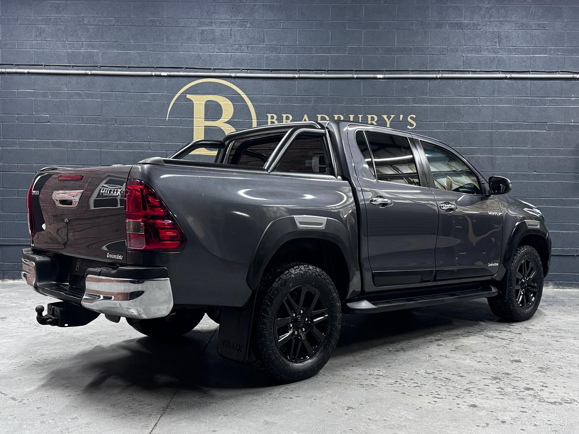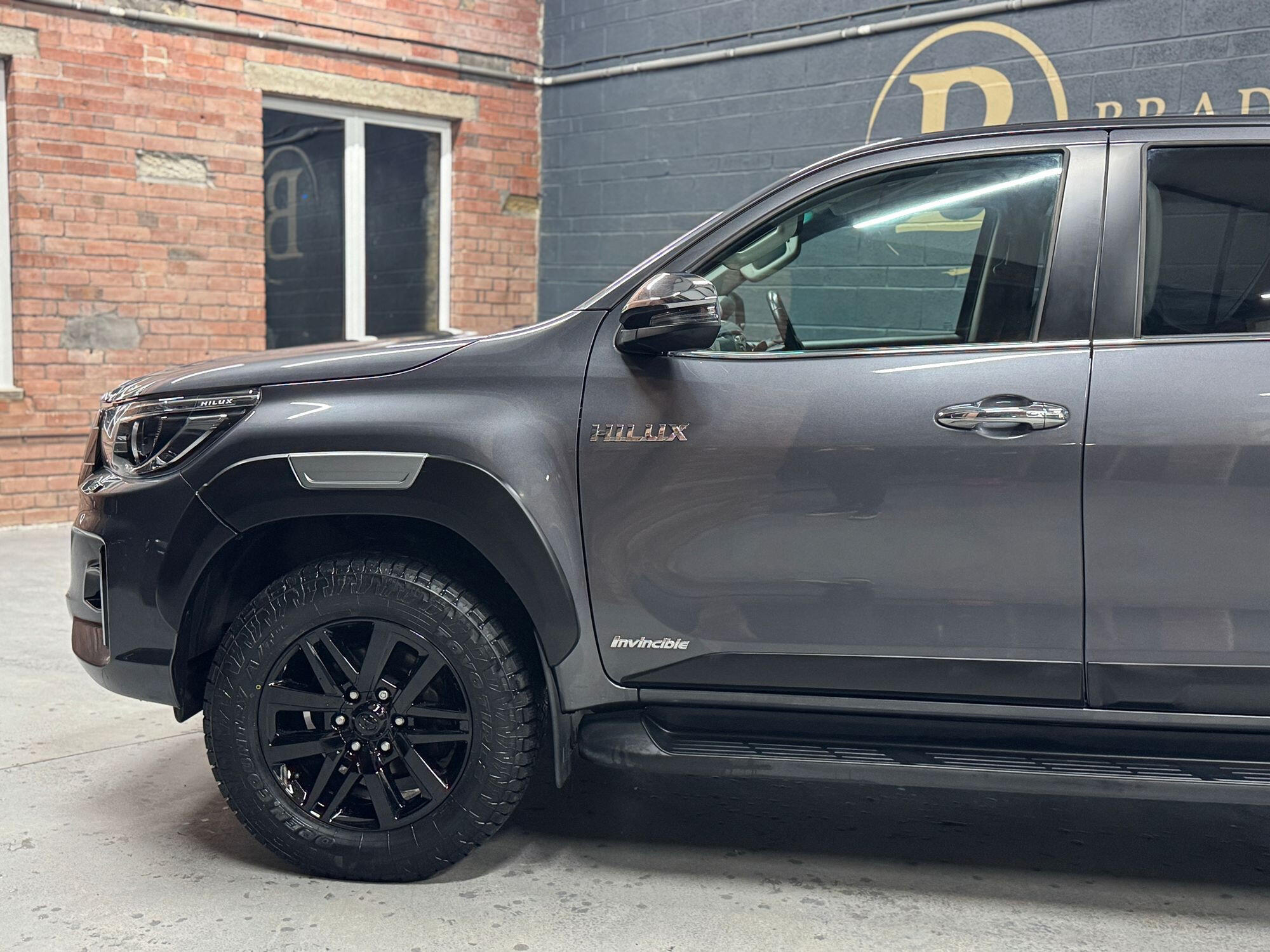 Bradburys Sports & Prestige are extremely proud to offer this absolutely stunning Toyota Hilux Invincible Auto finished in the beautiful shade of Grey Metallic. This is a beautifully specified vehicle, it is in truly fantastic condition and is one of the very best on the market. The car really is a testament to its 2 previous owner who have clearly proudly cherished and cared for the vehicle impeccably. The Vehicle has a comprehensive full service history with the latest service and mot having just been carried out. The vehicle comes fitted with the all important Toyota Mountain Top Roller shutter and black Roll Bars, Invincible X front bumper & wheel arches and upgraded brand new Toyo All Terrain tyres.